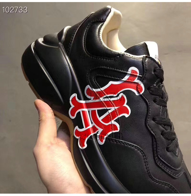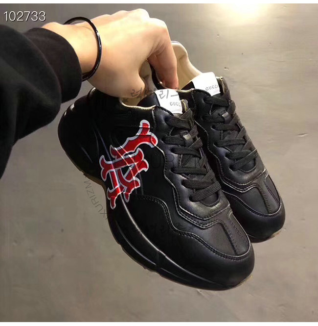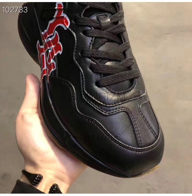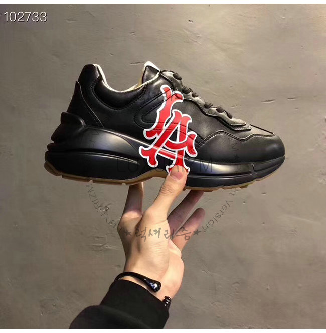 GUCCI-548637 1000 구찌 롸이톤 블랙 가죽 LA 엔젤스 프린트 스니커즈(남여공용)