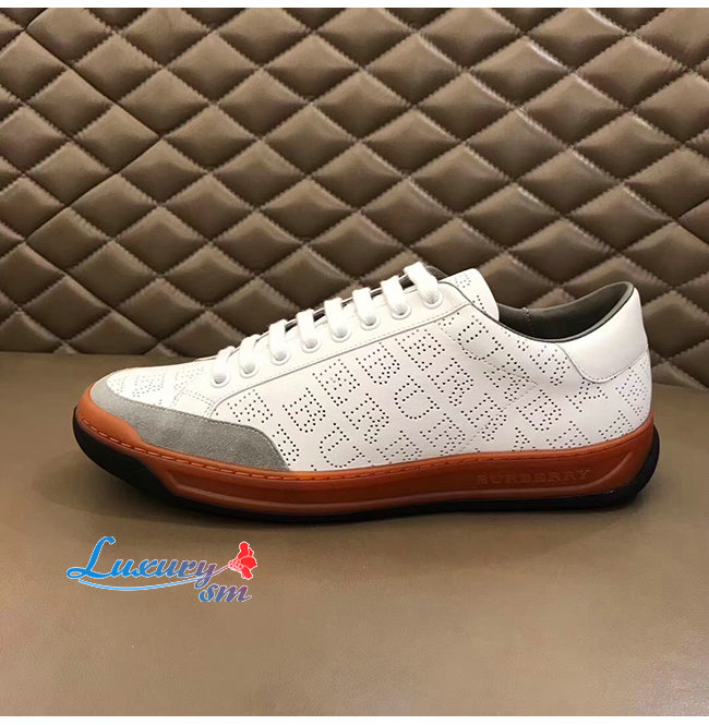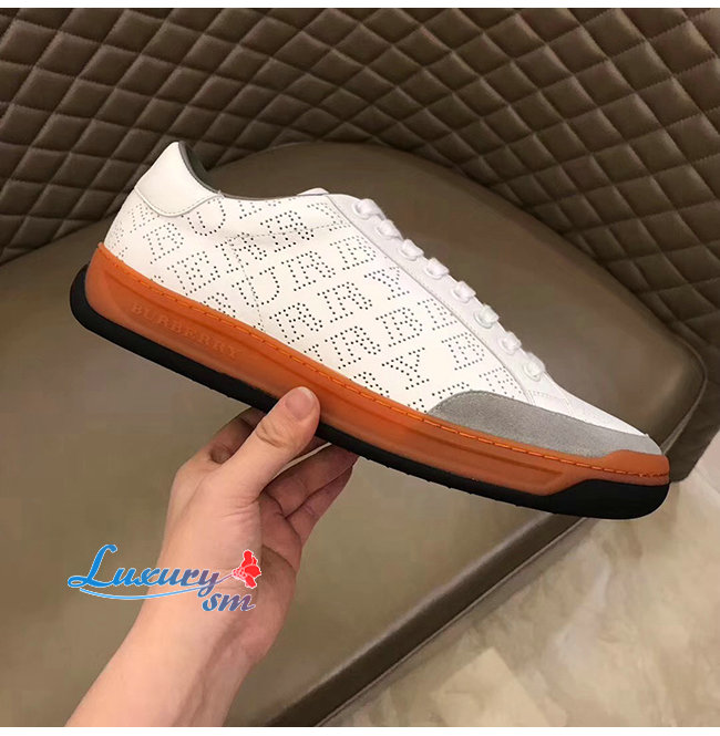 BURBERRY-80054361 버버리 화이트 송아지 가죽 퍼포레이트 로고 스니커즈