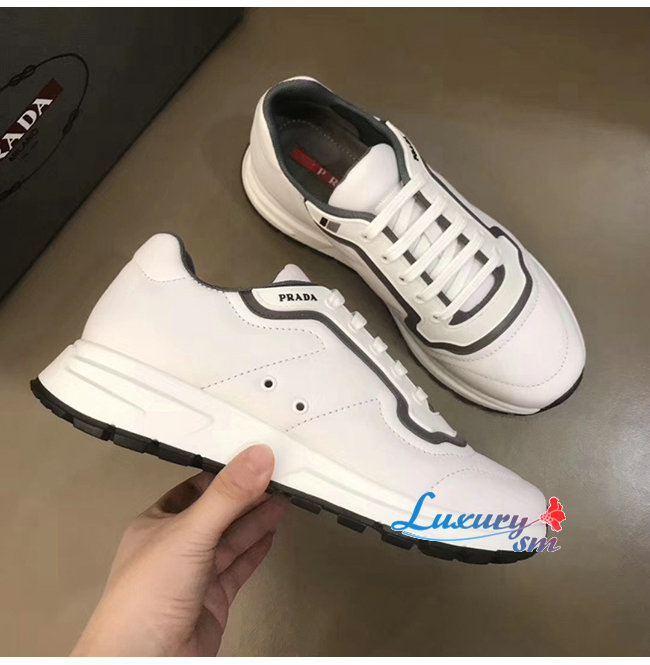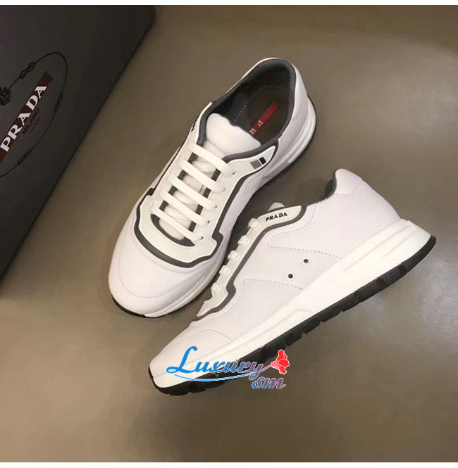 PRADA-4E3382 프라다 화이트 개버딘 패브릭 스니커즈