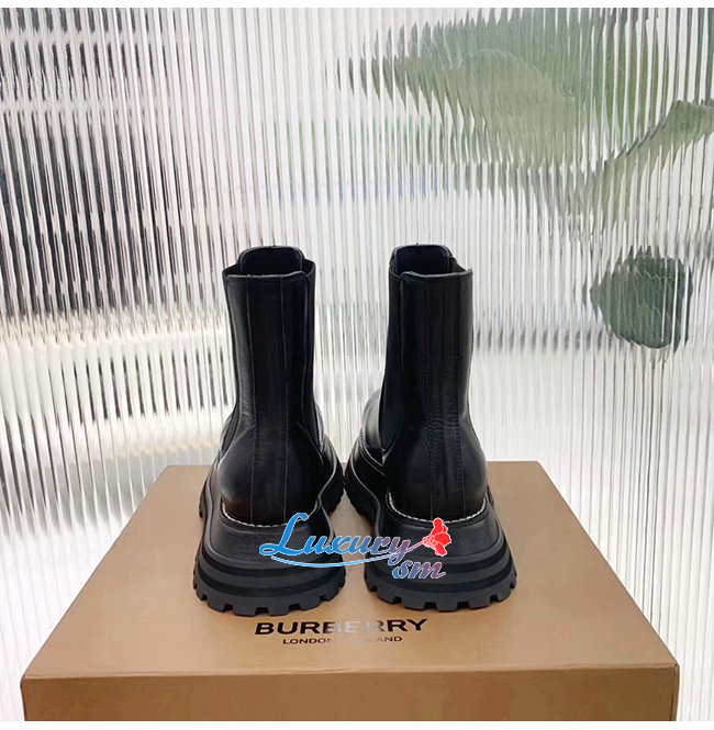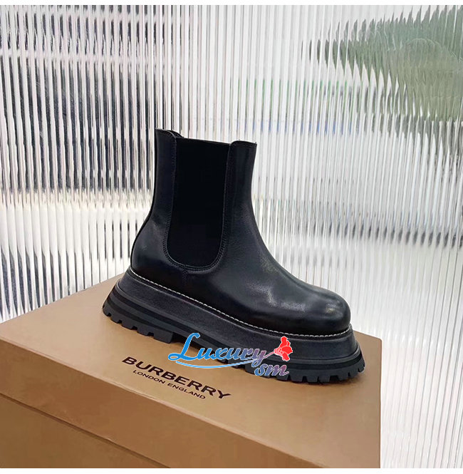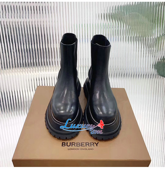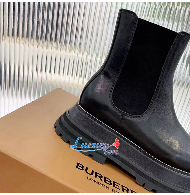 BURBERRY-80172211 버버리 블랙 송아지 가죽 첼시 부츠