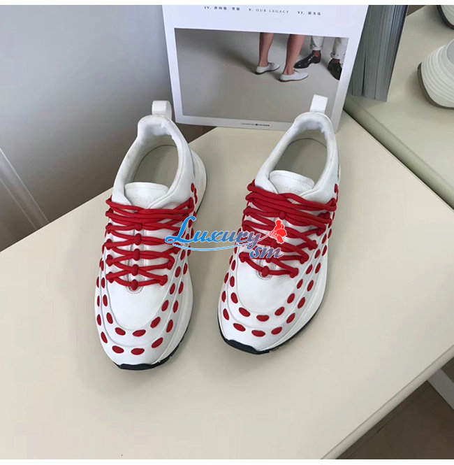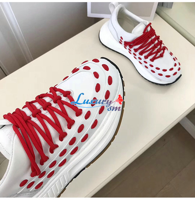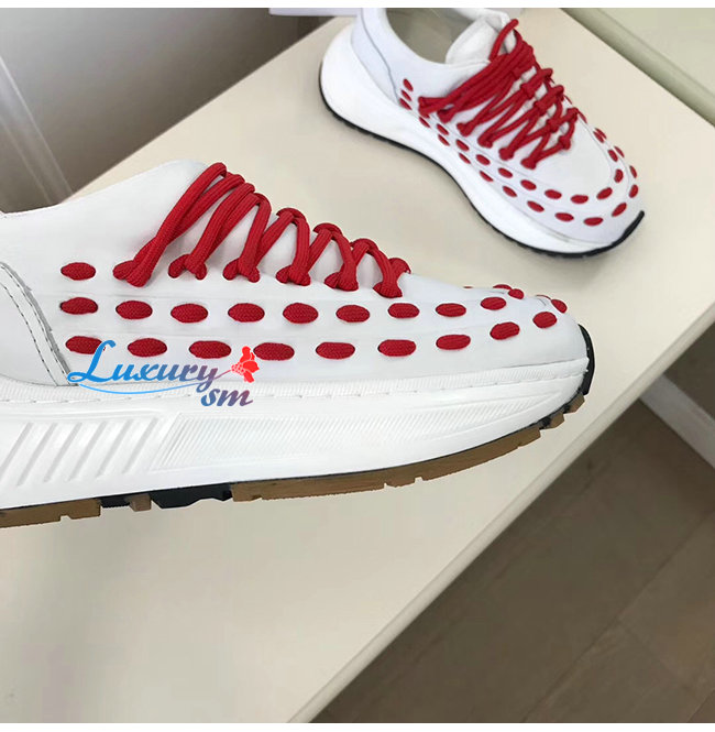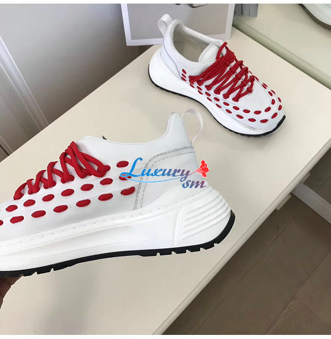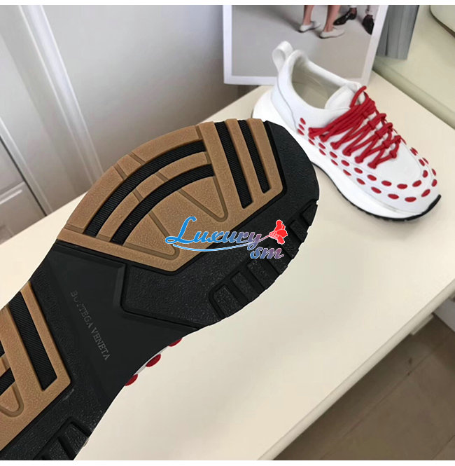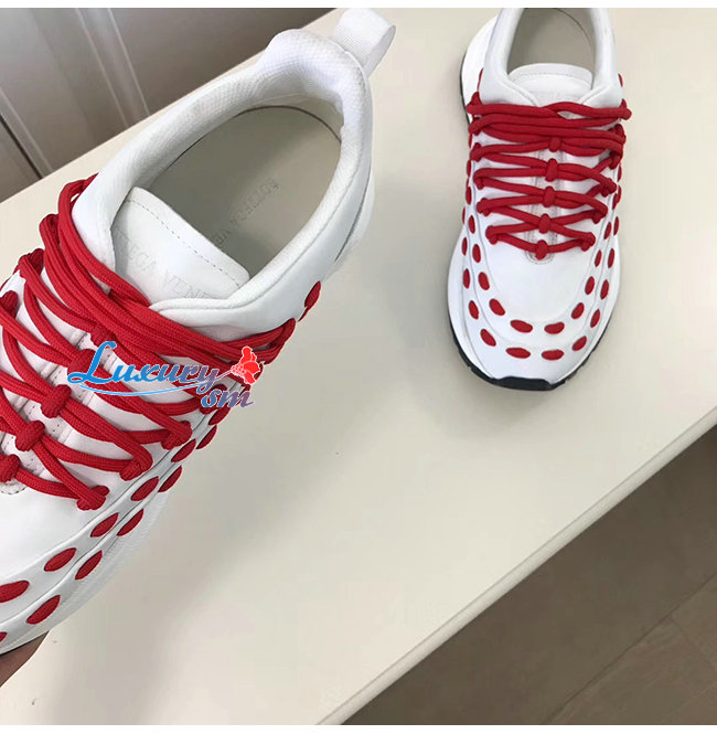 BOTTEGA VENETA-585170 보테가 베네타 화이트/레드 카프스킨 레이스 스피드스터 스니커즈