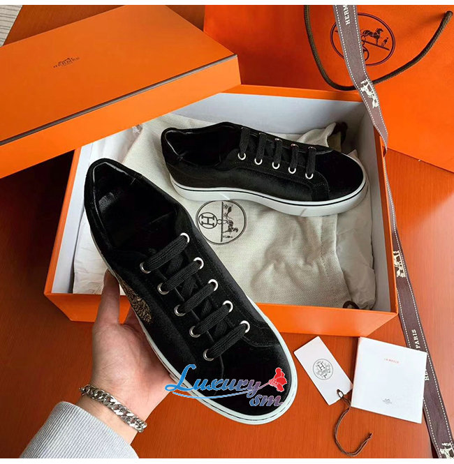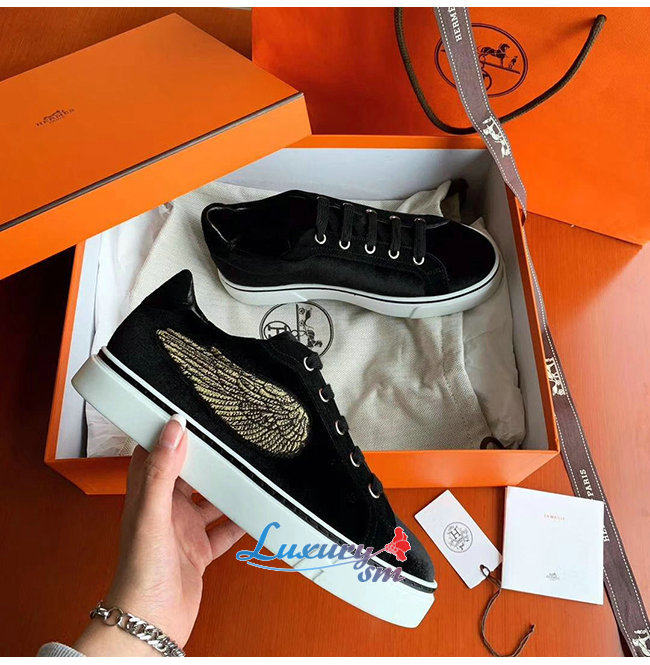 HERMES-H192114 에르메스 블랙 벨벳 윙 디테일 스니커즈