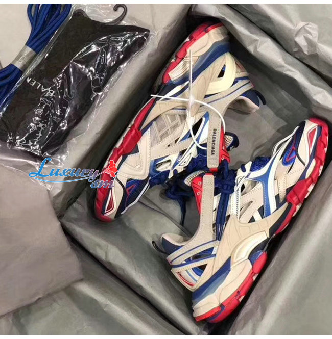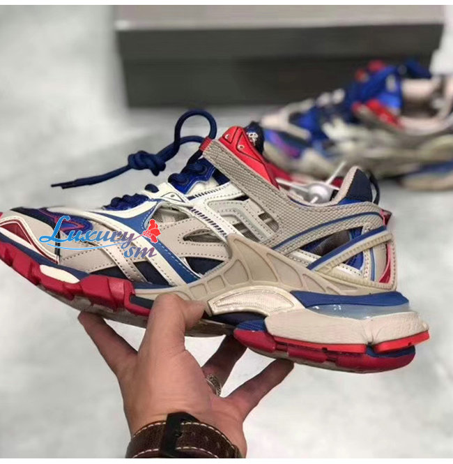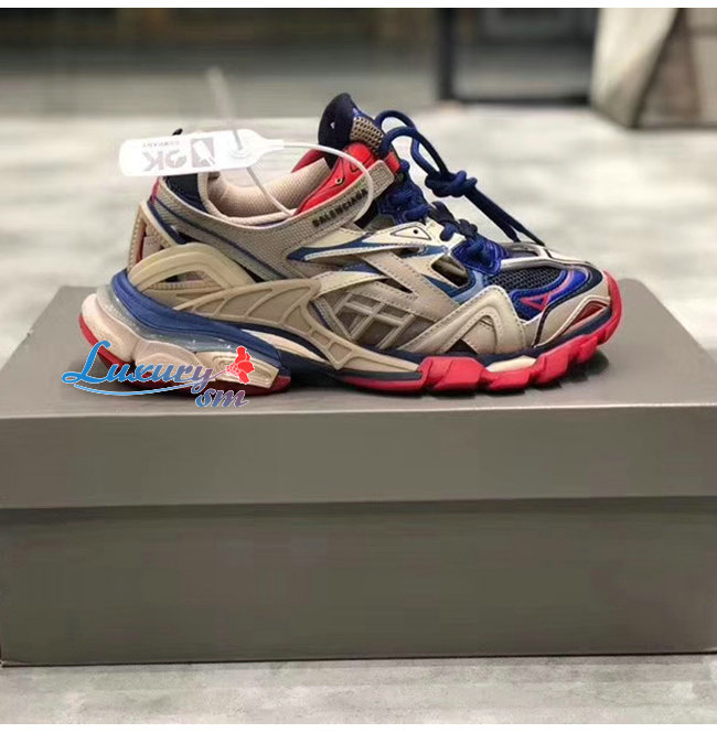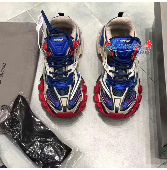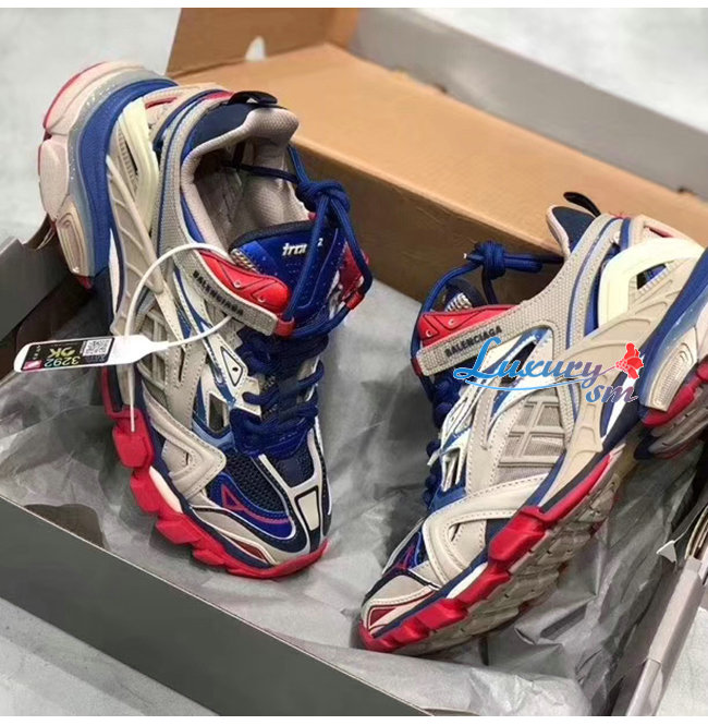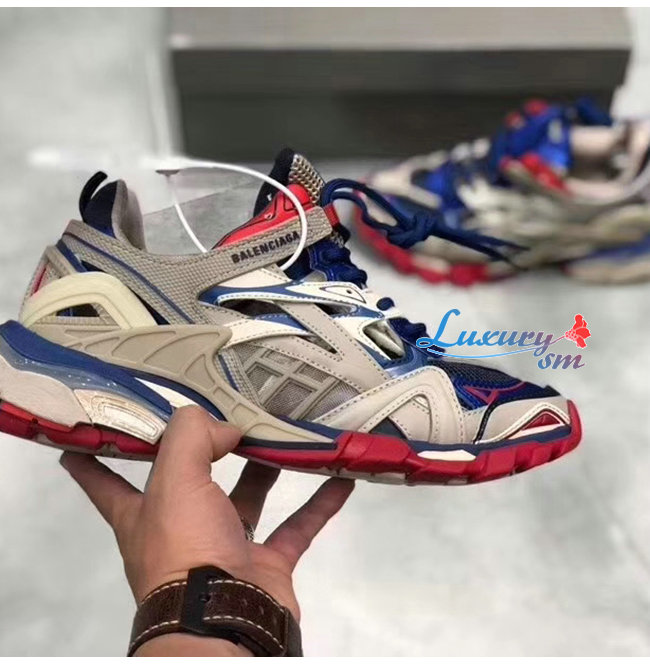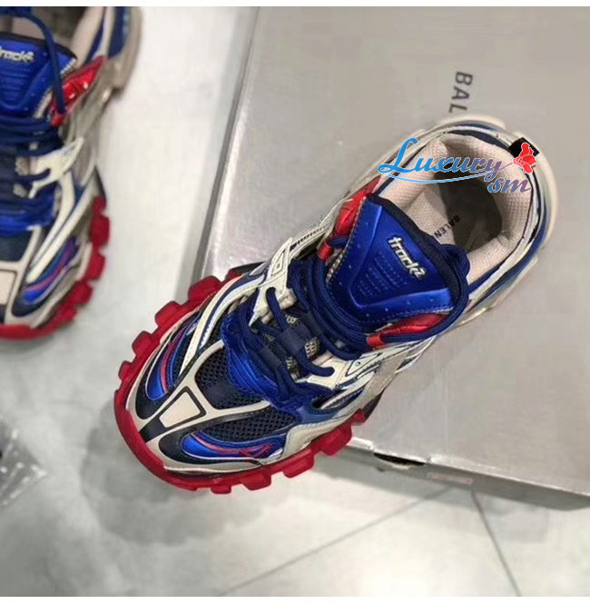 BALENCIAGA-568614 발렌시아가 블루/베이지/레드 TRACK2/트랙2 트레이너 남녀공용 페이크 스니커즈
