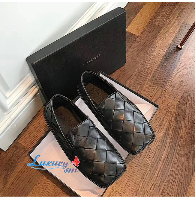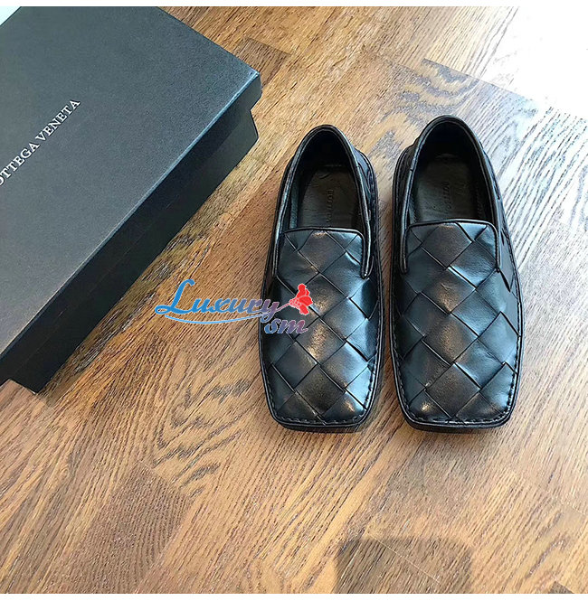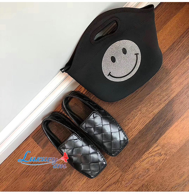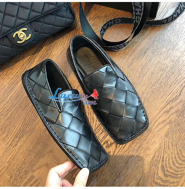 BOTTEGA VENETA-578309 보테가 베네타 네로 송아지 가죽 인트레치아토 스퀘어 토 슬리퍼 여성용