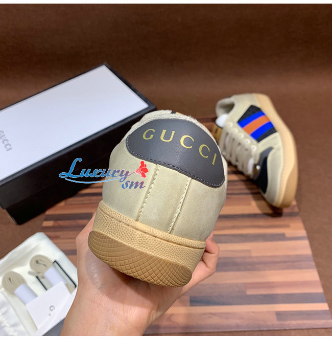 GUCCI-546163 9582 구찌 스크리너 화이트 천공 가죽 디스트로이드 효과 스니커즈