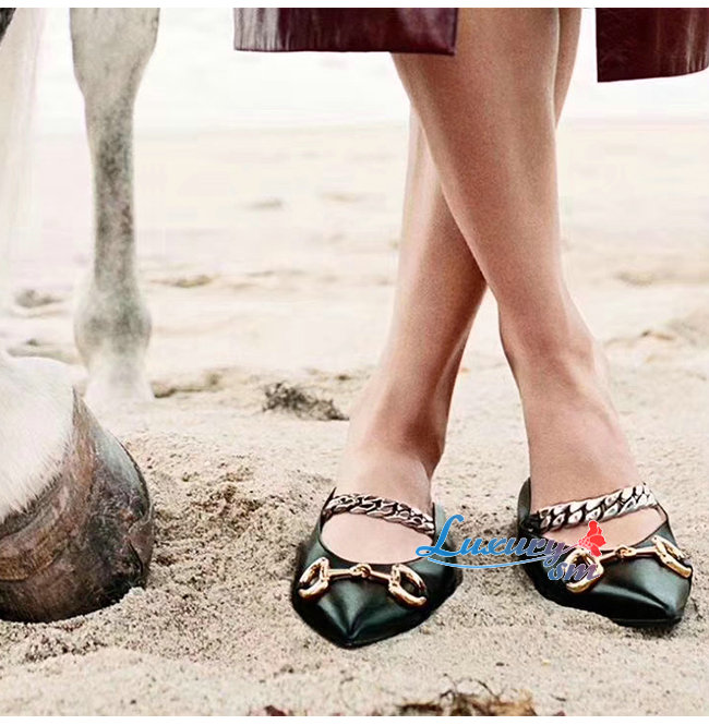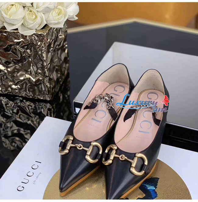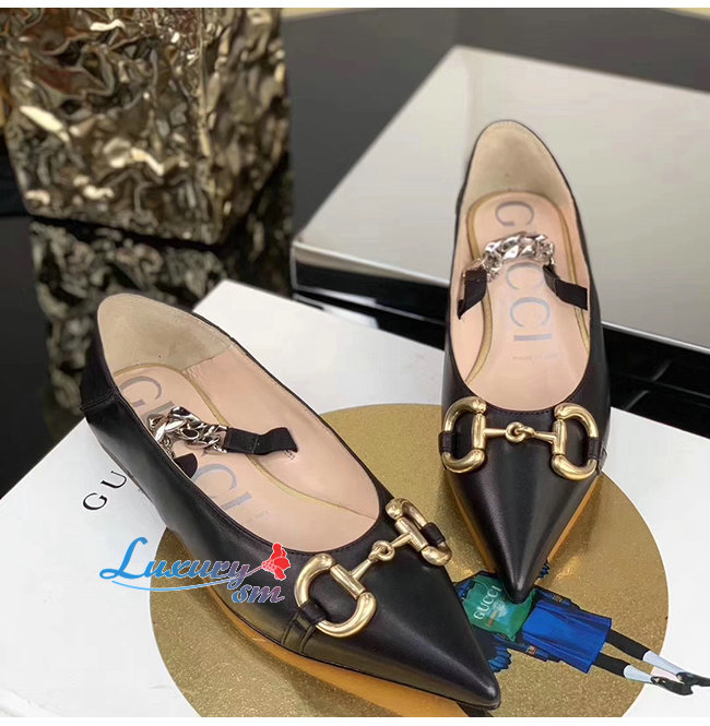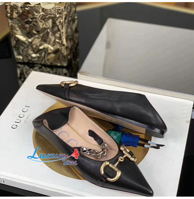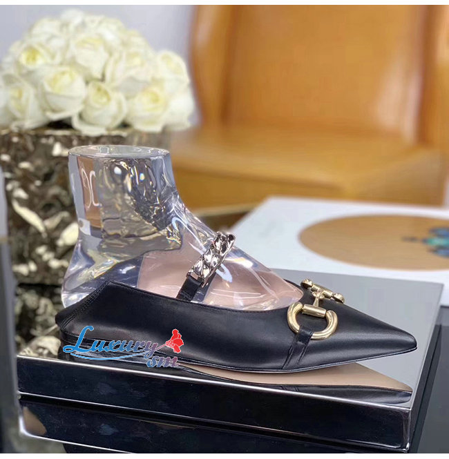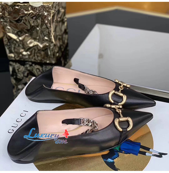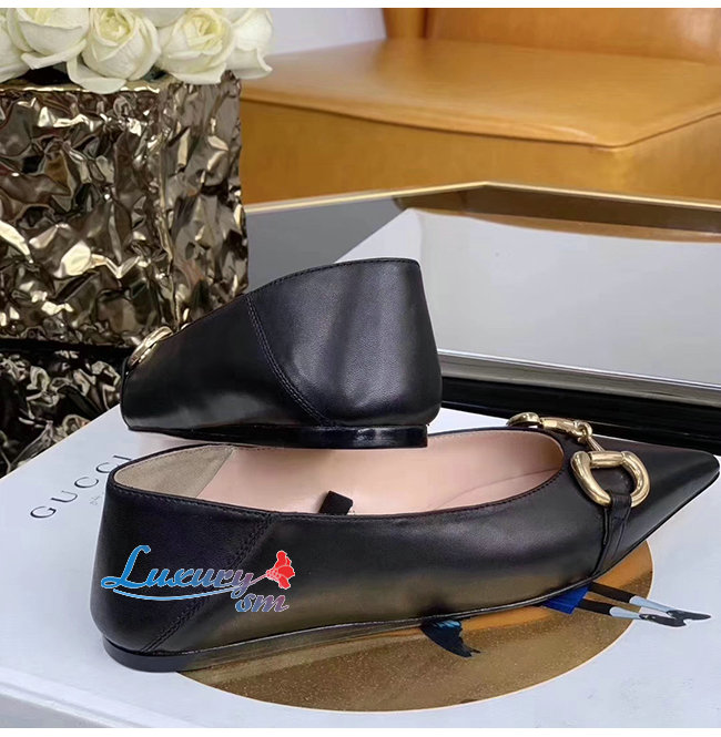 GUCCI-621161 1000 구찌 블랙 가죽 홀스빗 플랫 슈즈