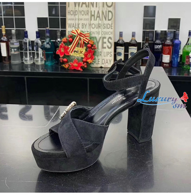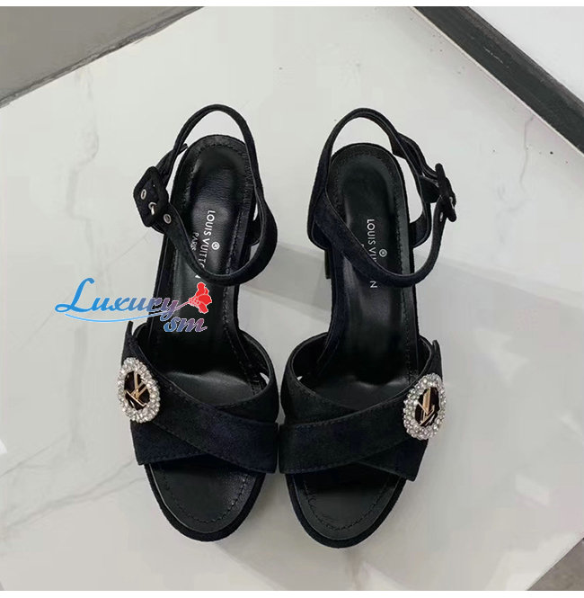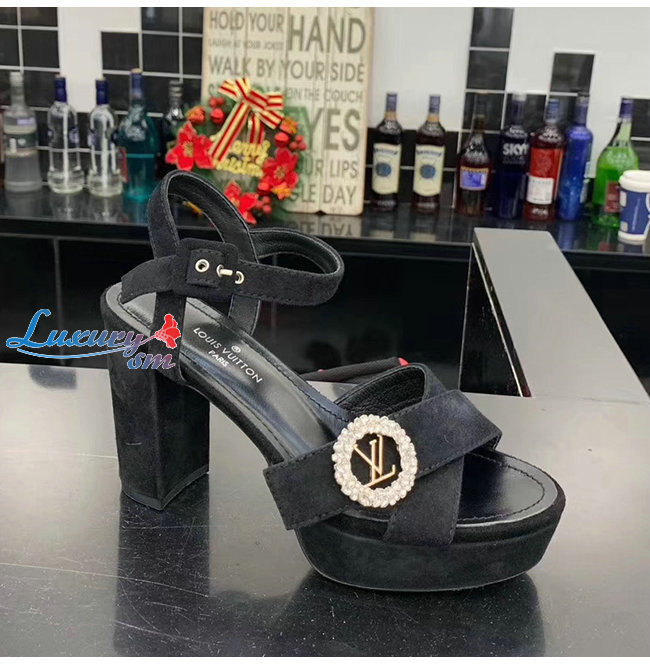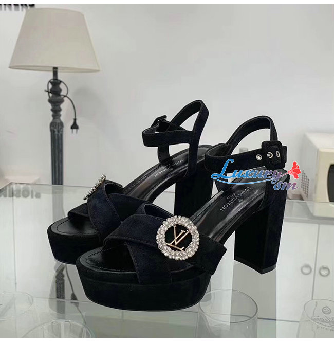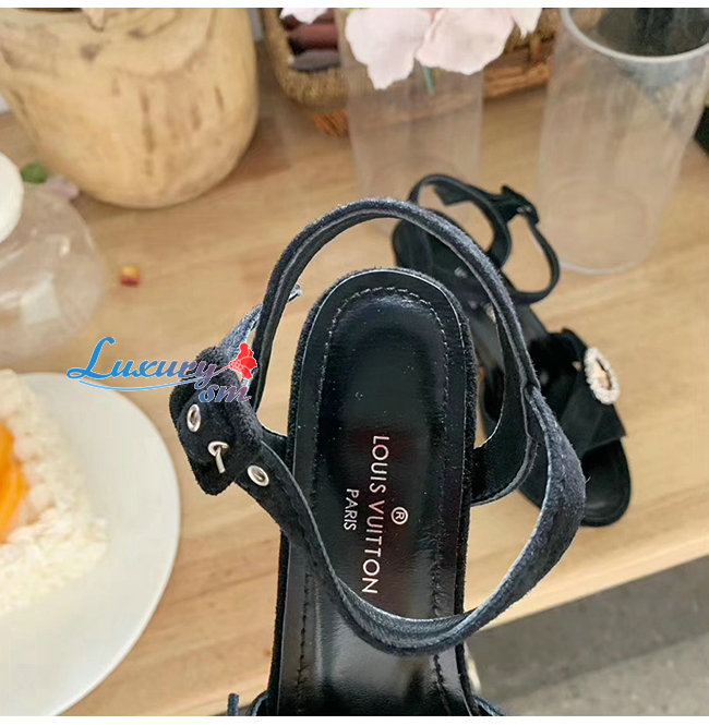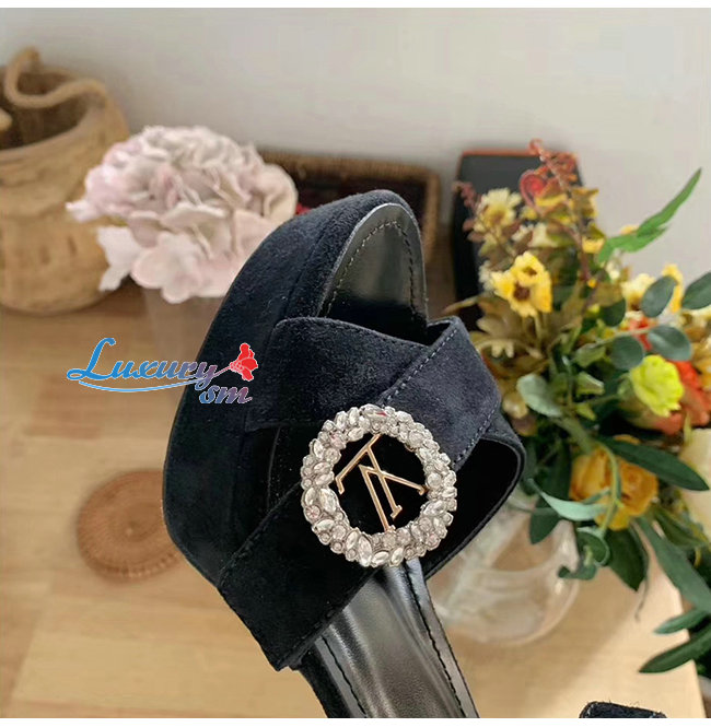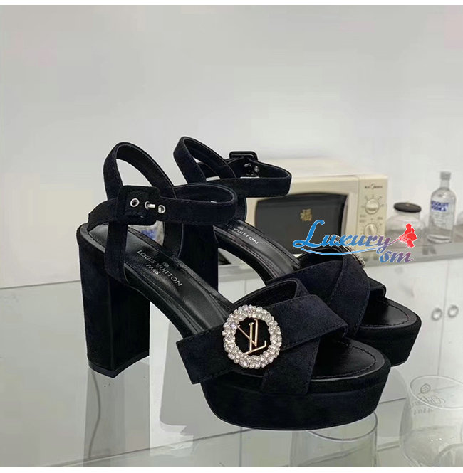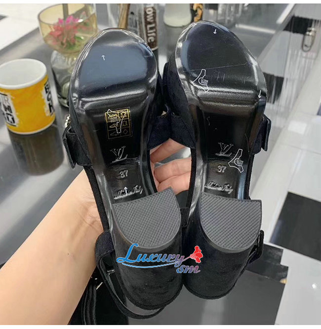 LOUIS VUITTON-1A5KJM 루이비통 블랙 벨벳 마들렌 플랫폼 샌들
