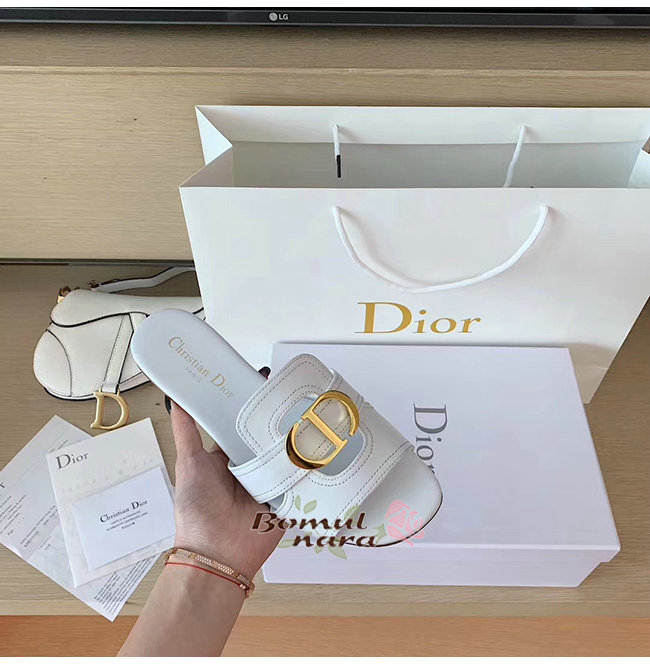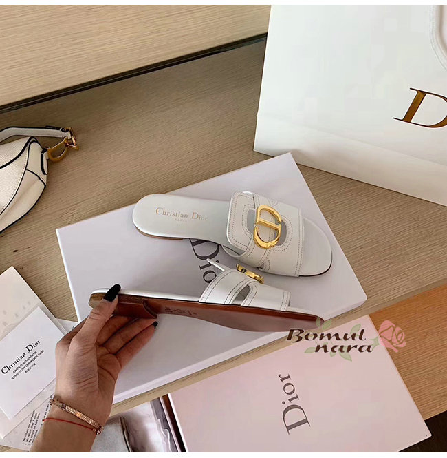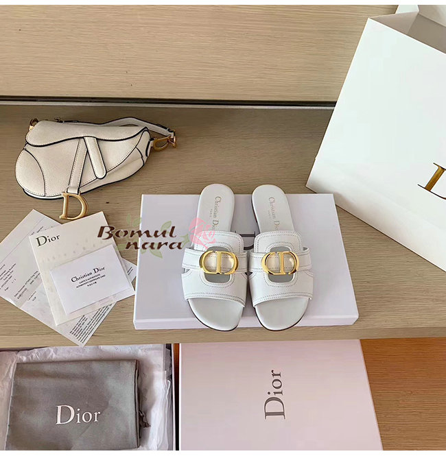 DIOR-KCQ266 디올 화이트 30 MONTAIGNE 몽테뉴 뮬 여성 슬리퍼