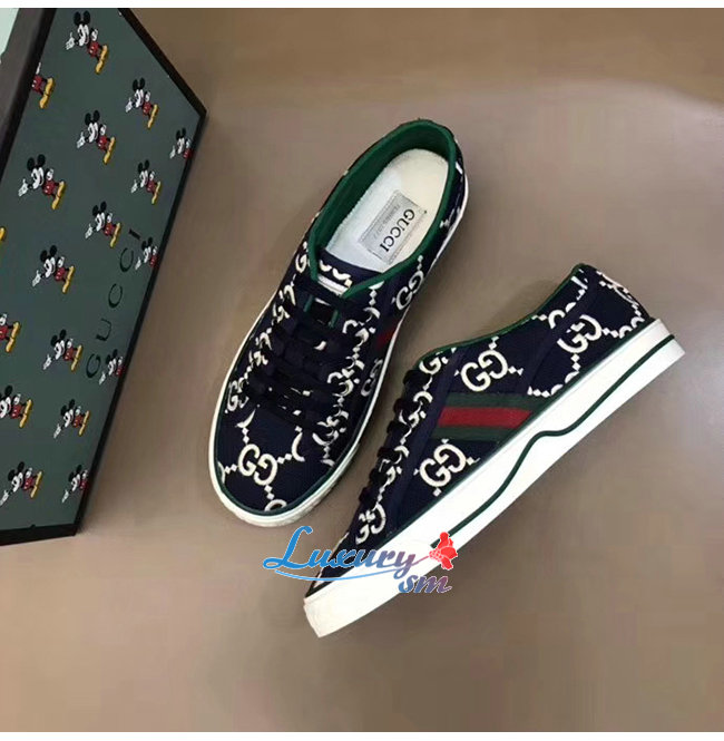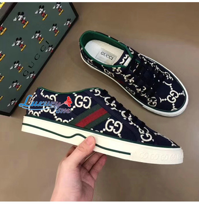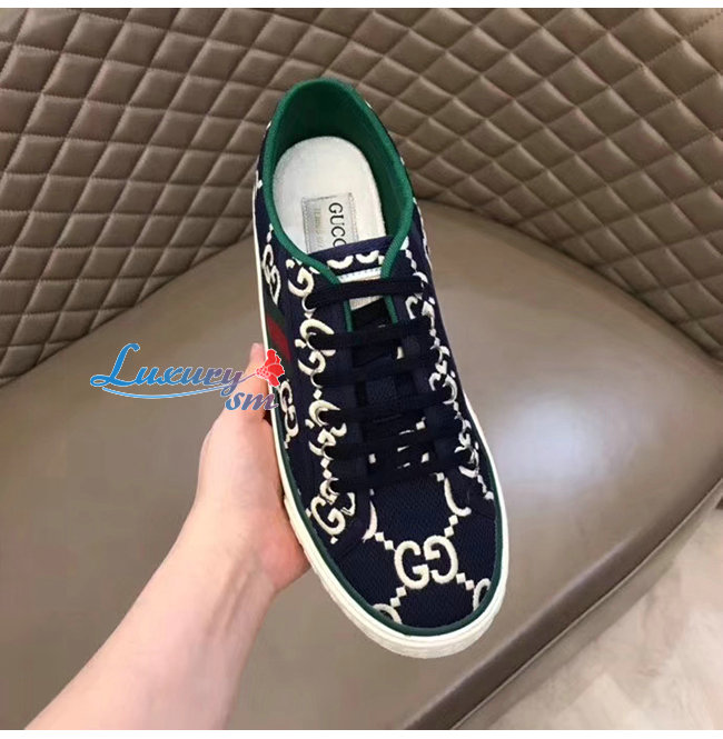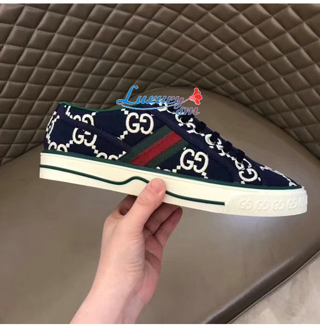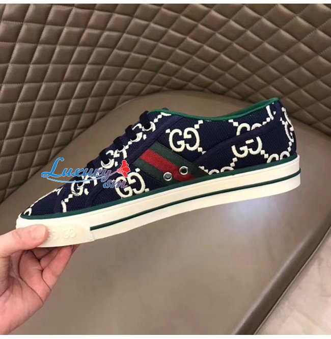 GUCCI-606111 4370 구찌 블루/아이보리 GG 스트레치 코튼 구찌 1977 스니커즈