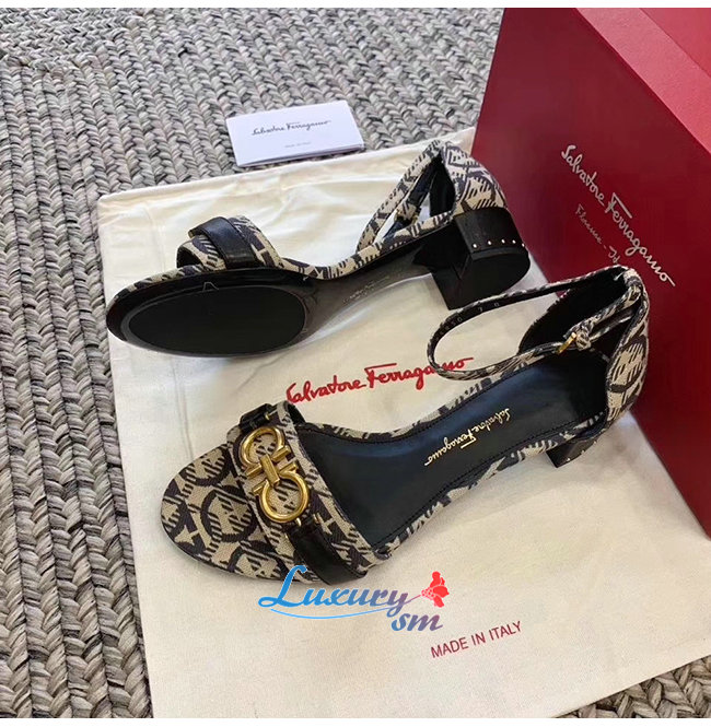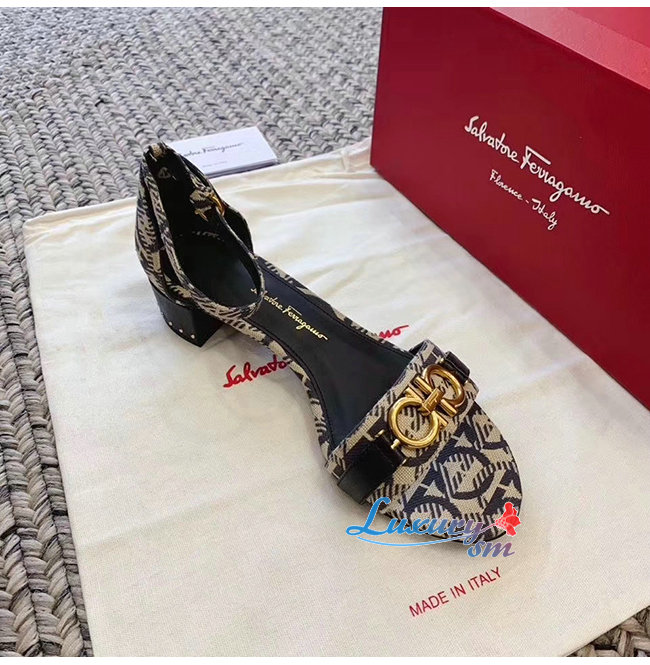 Ferragamo-01P460 페라가모 모노그램 캔버스 간치니 샌들