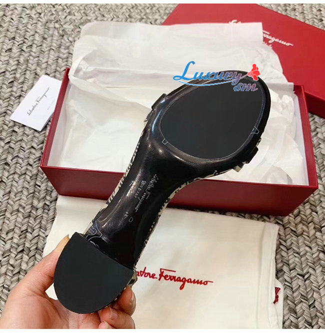 Ferragamo-01P087 페라가모 블랙 페이턴트 가죽 간치니 샌들