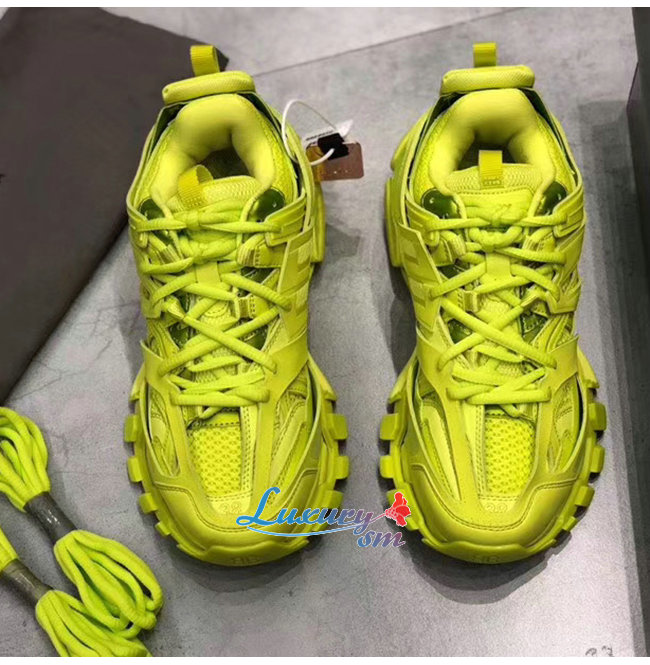BALENCIAGA-542436 발렌시아가 옐로우 메쉬 나일론 TRACK 스니커즈 여성용