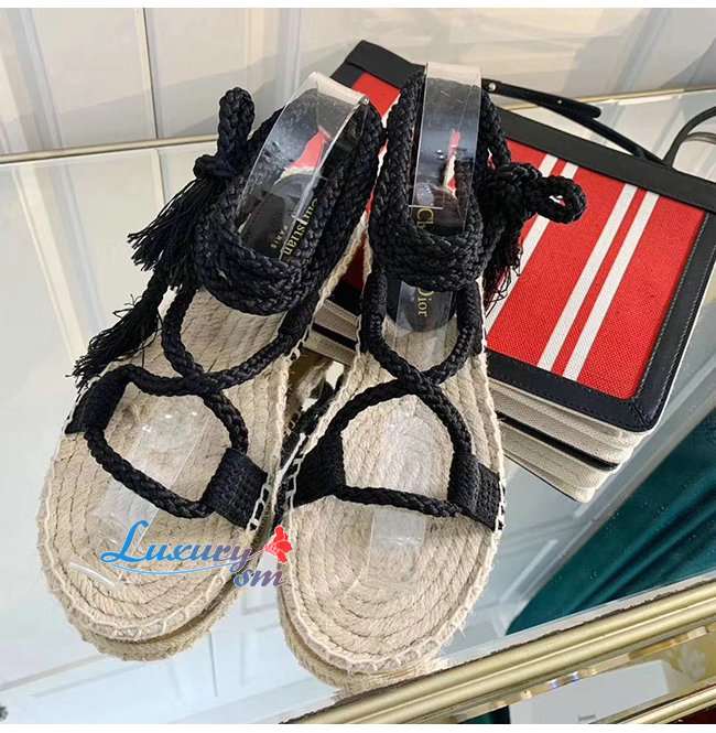 DIOR-KCQ349 디올 블랙 DIOREXPRESS 자수 우븐 코튼 샌들