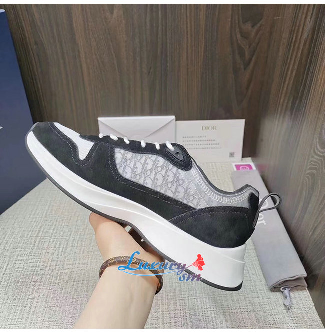 DIOR-3SN259 디올 블랙 DIOR OBLIQUE 패턴 스웨이드 B25 러너 스니커즈 남성용