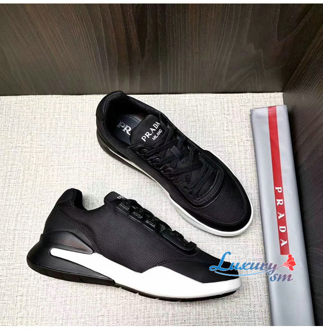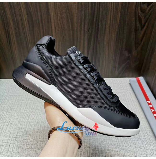 [스페셜오더]PRADA-4E3465 프라다 블랙 테크니컬 페브릭 송아지 가죽 스니커즈