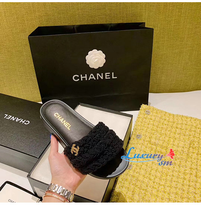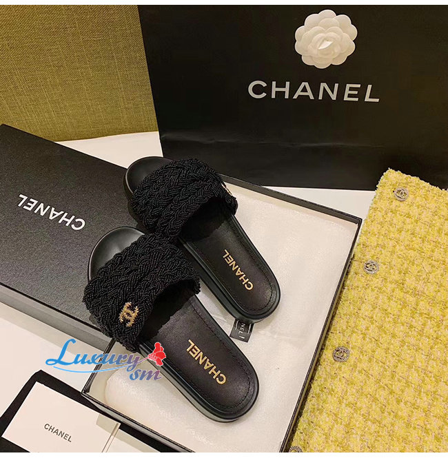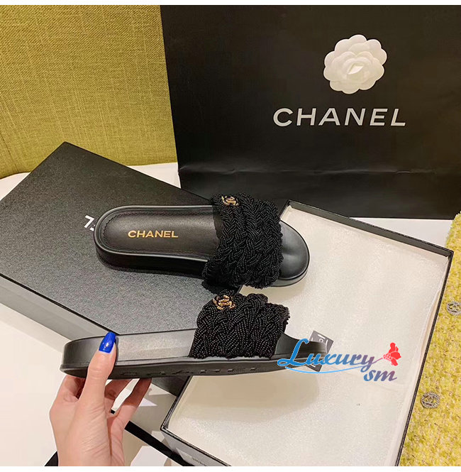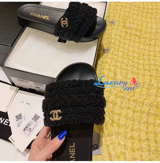 CHANEL-G35696 샤넬 블랙 펄 램스킨 뮬