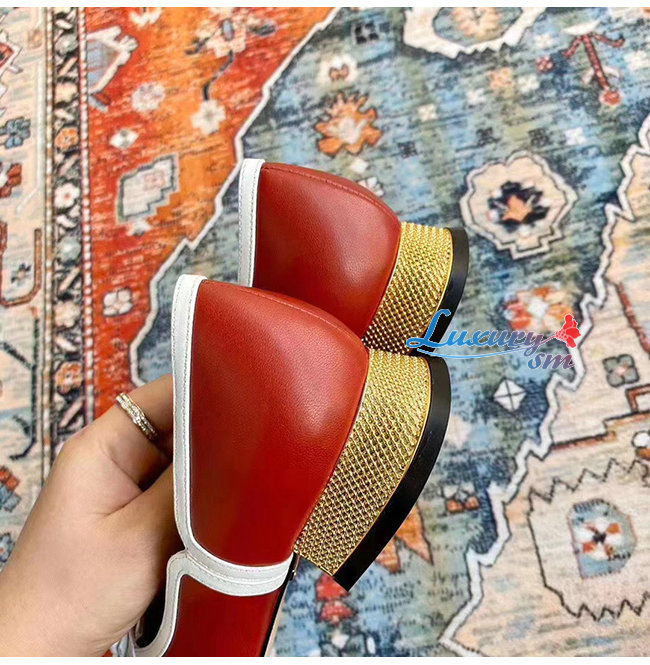 레드/화이트 가죽소재의 발레 펌프스,텍스처드 메탈