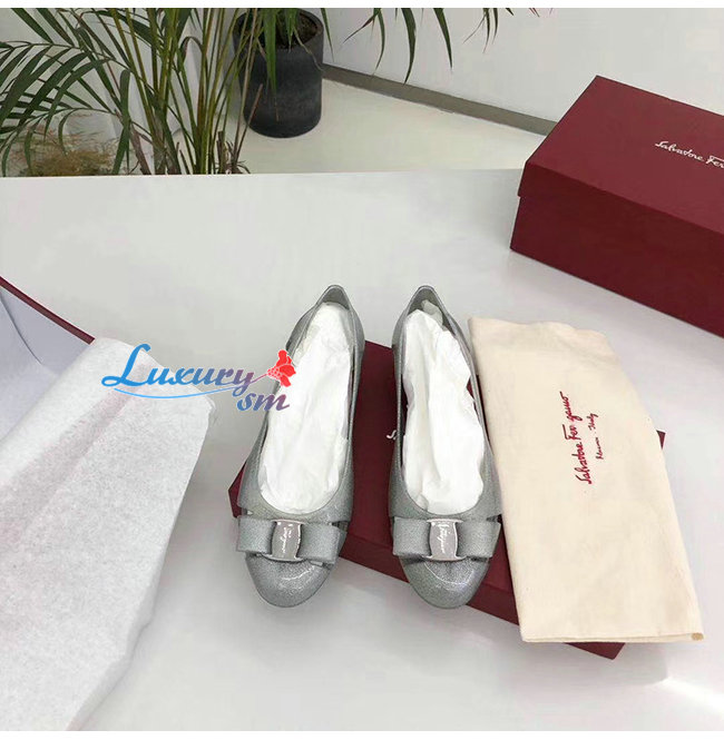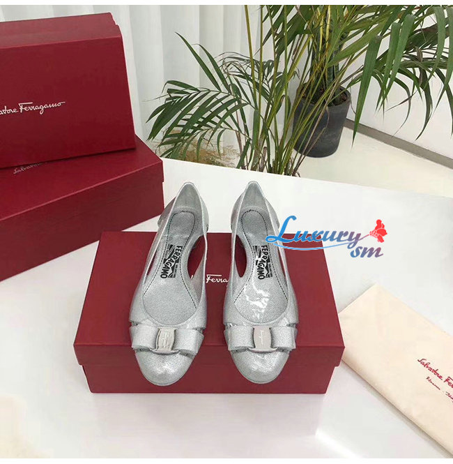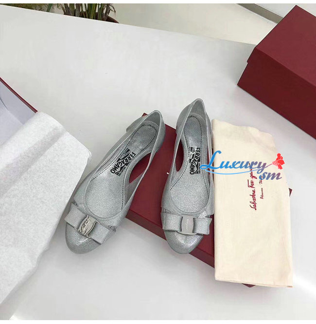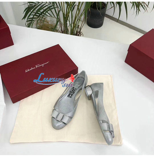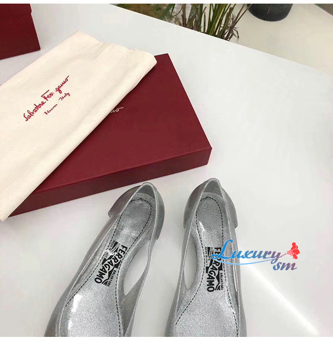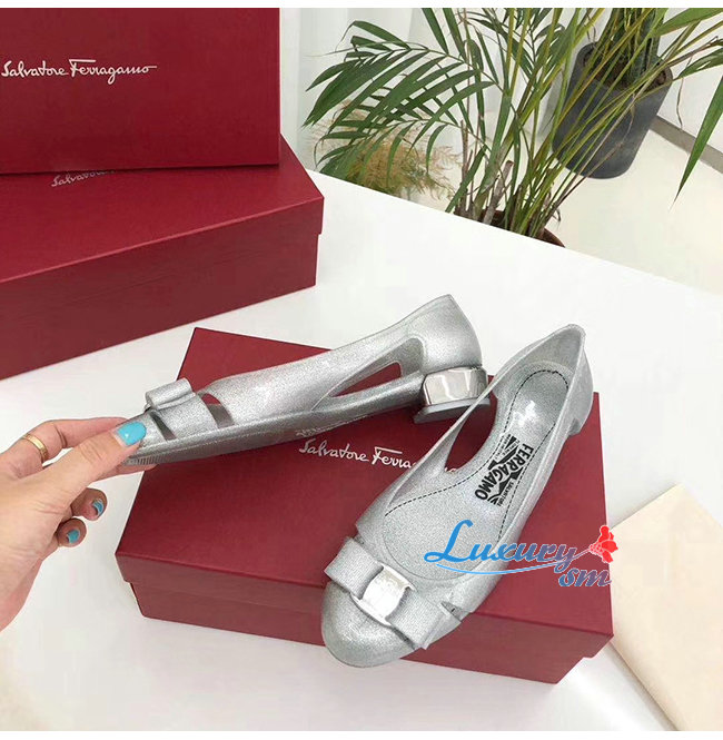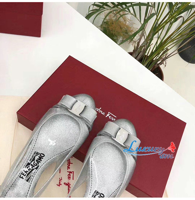 Ferragamo-035656 페라가모 실버 PVC 바라 보우 슬립