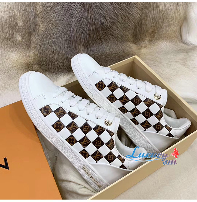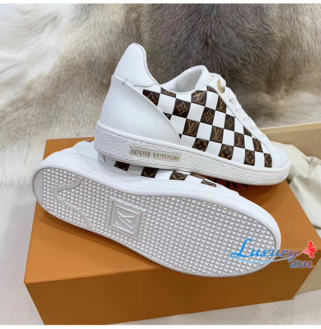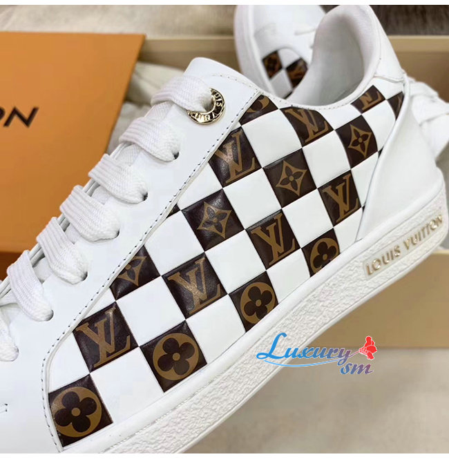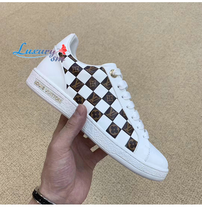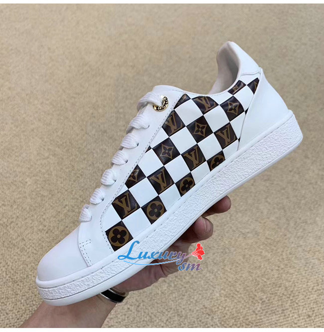 LOUIS VUITTON-1A678R 루이비통 화이트 송아지 가죽 모노그램 디테일 프론트로우 스니커즈
