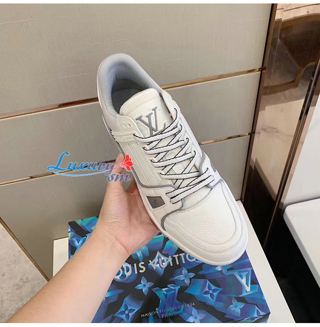 [스페셜오더]LOUIS VUITTON-1A5PZO 루이비통 화이트 그레인 송아지 가죽 LV 트레이너 스니커즈