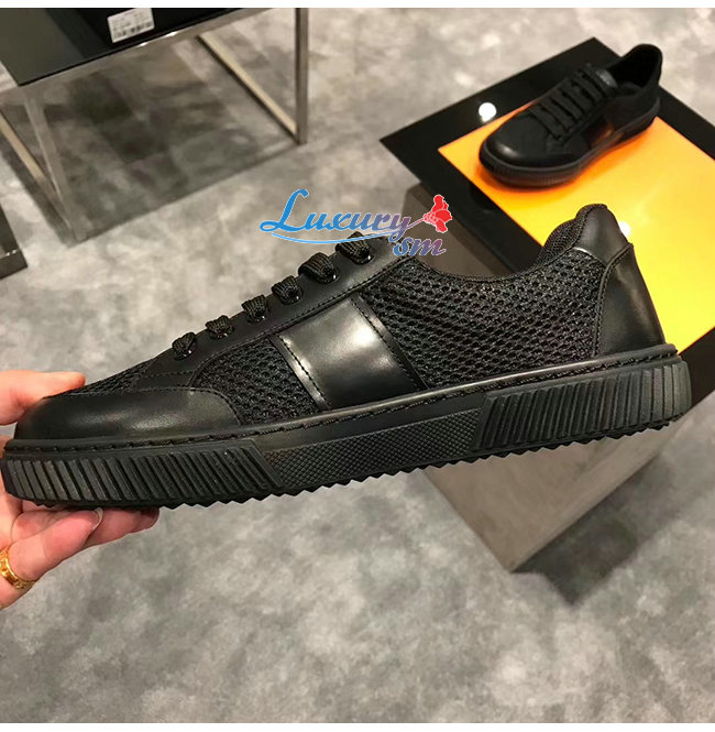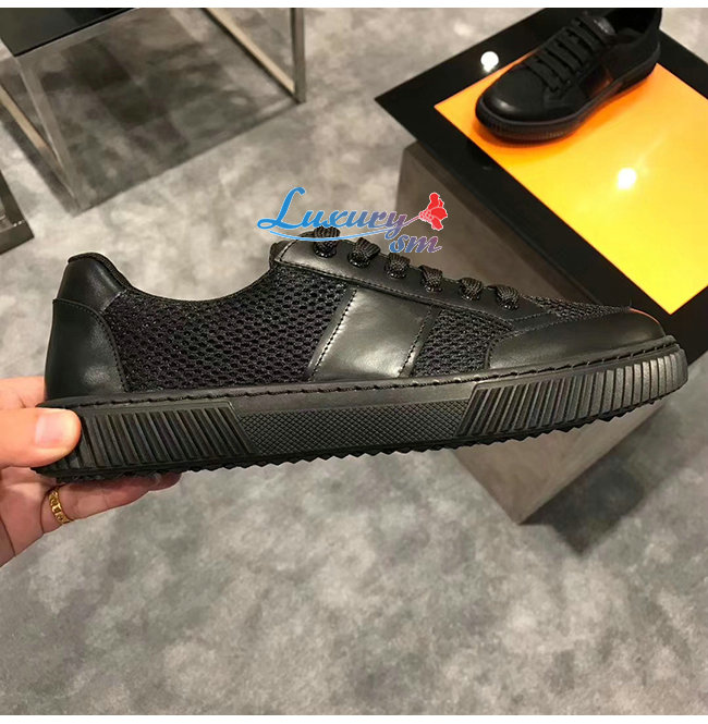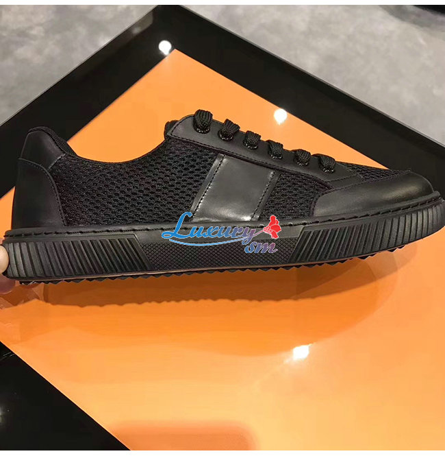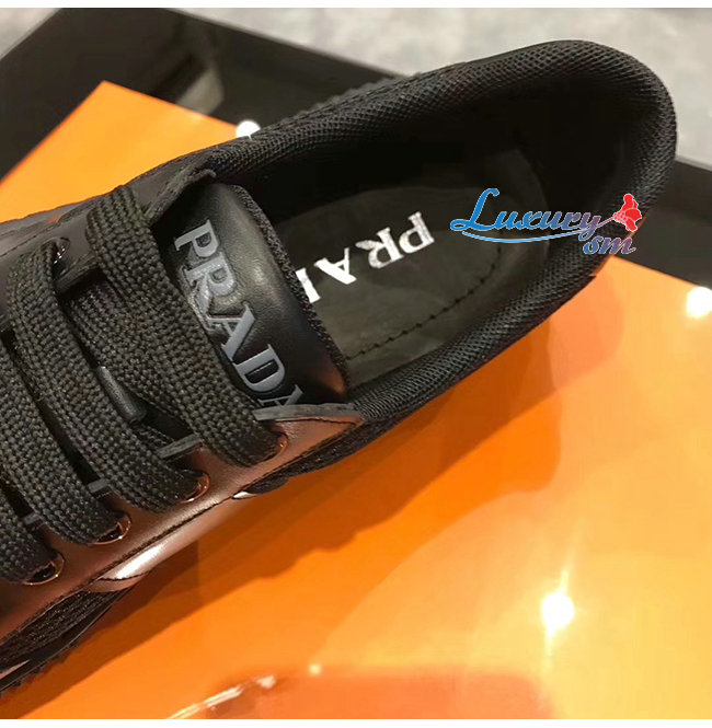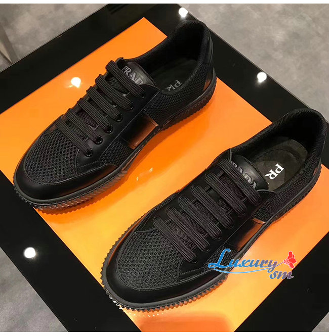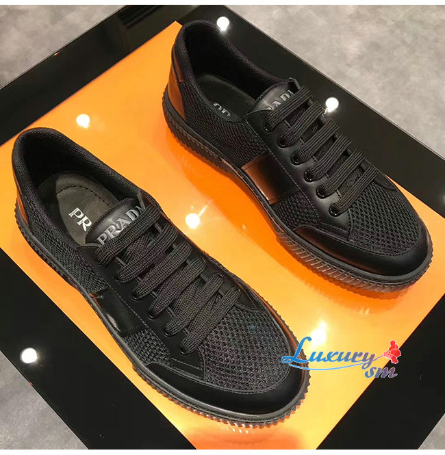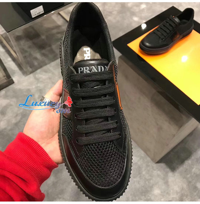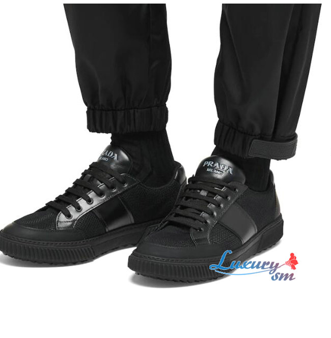 PRADA-4E3506 프라다 블랙 메시 송아지 가죽 스니커즈