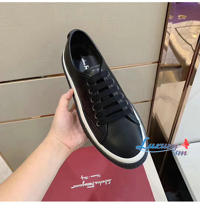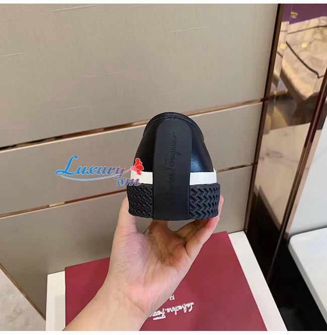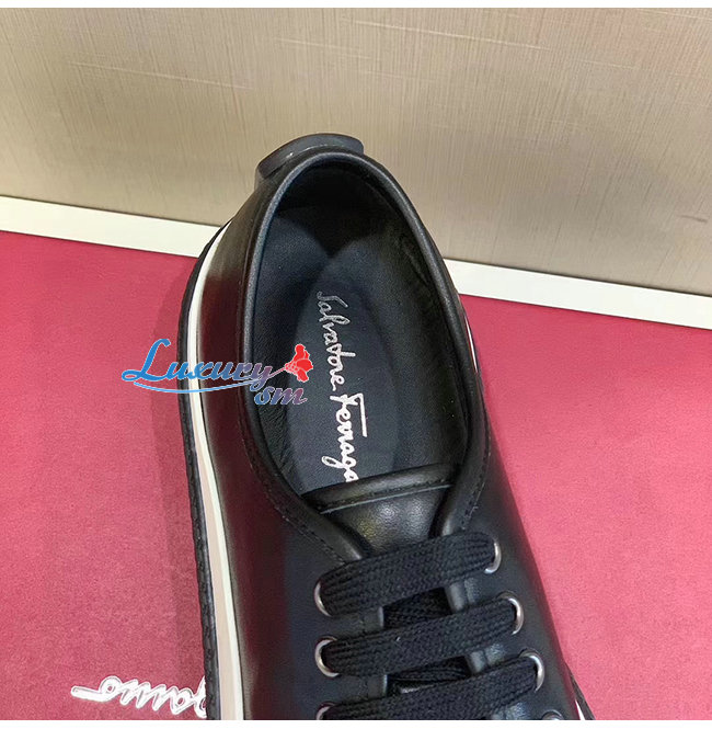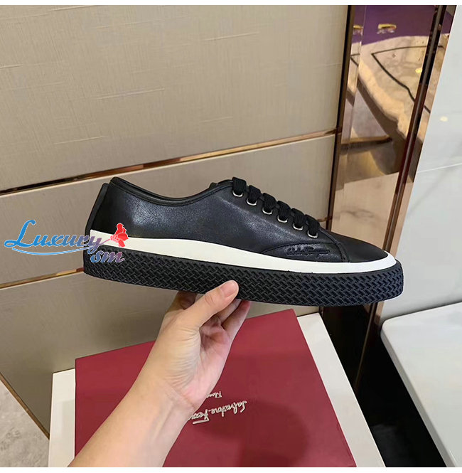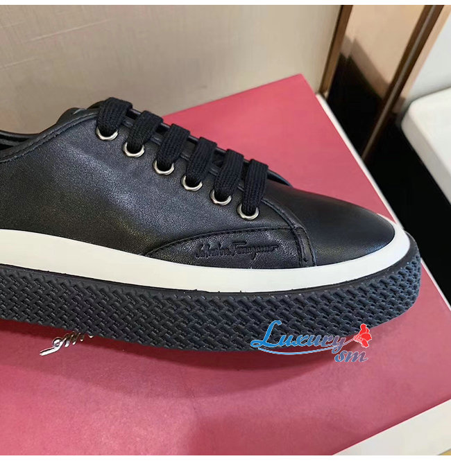 Ferragamo-02C115 페라가모 블랙 카프스킨 텍스터라이즈 솔 스니커즈