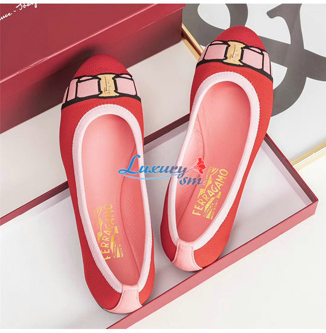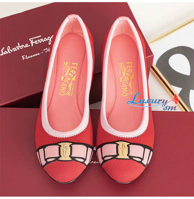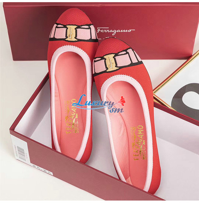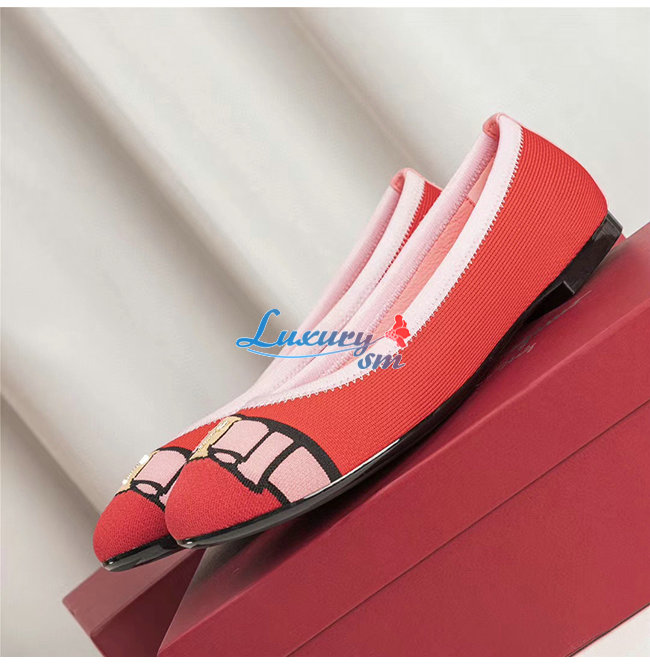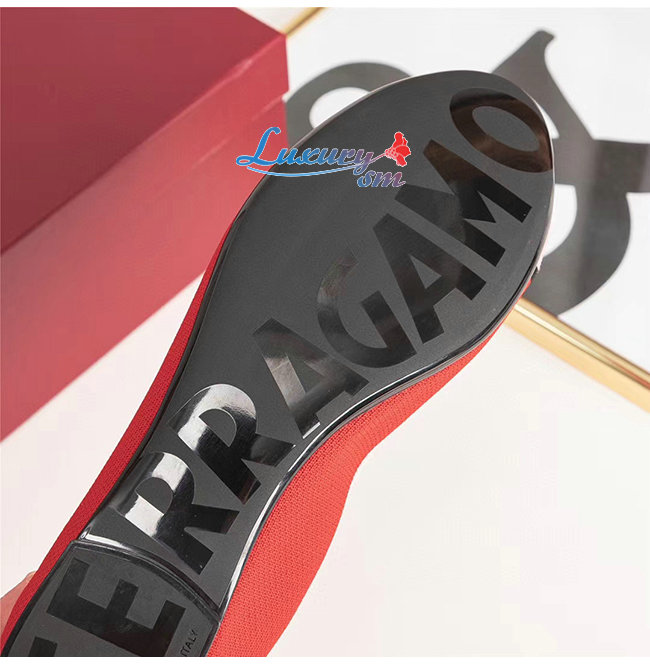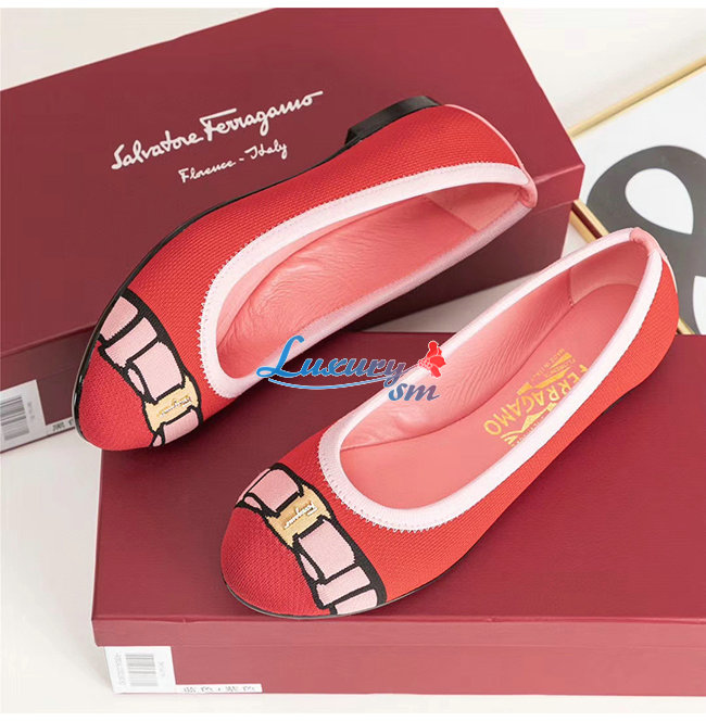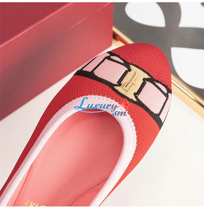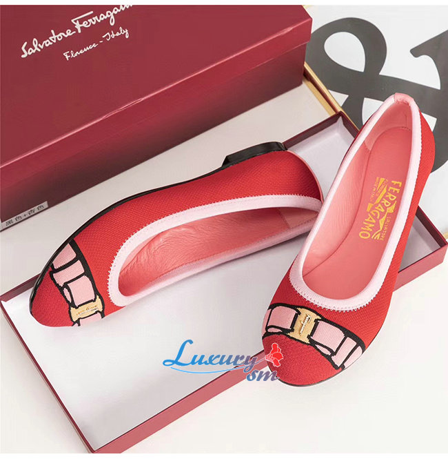 Ferragamo-01N989 페라가모 레드 코튼 바리나 발렛 플랫