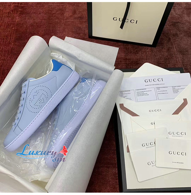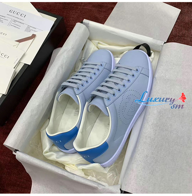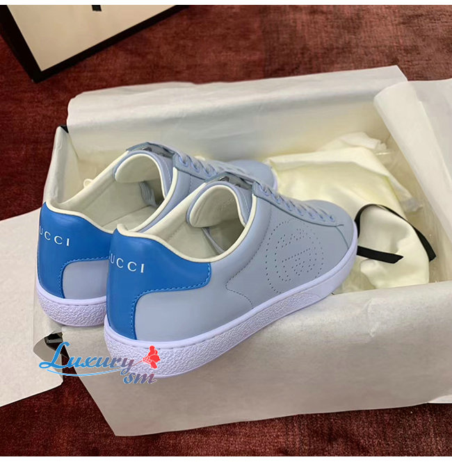 GUCCI-598527 4971 구찌 에이스 블루 가죽 인터로킹 G 디테일 스니커즈 남여공용