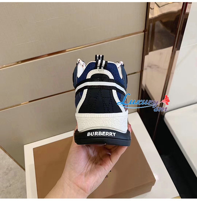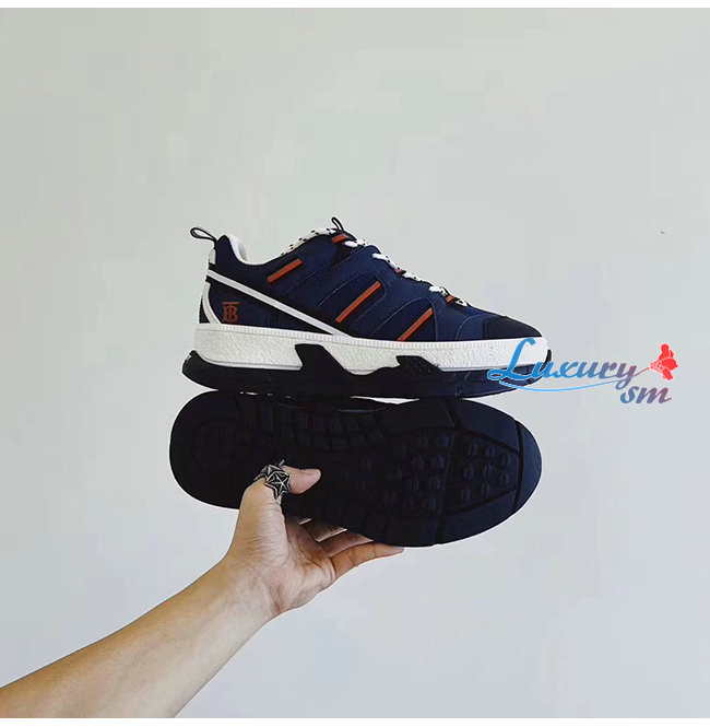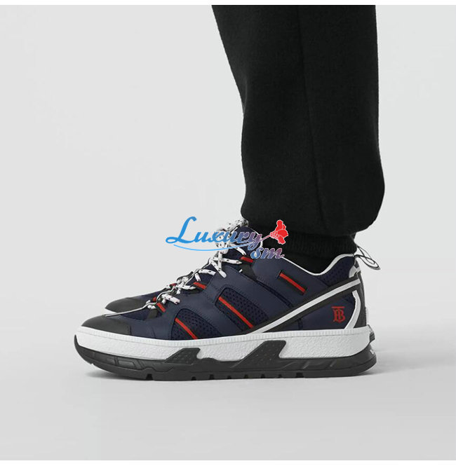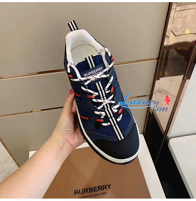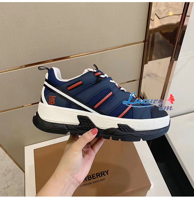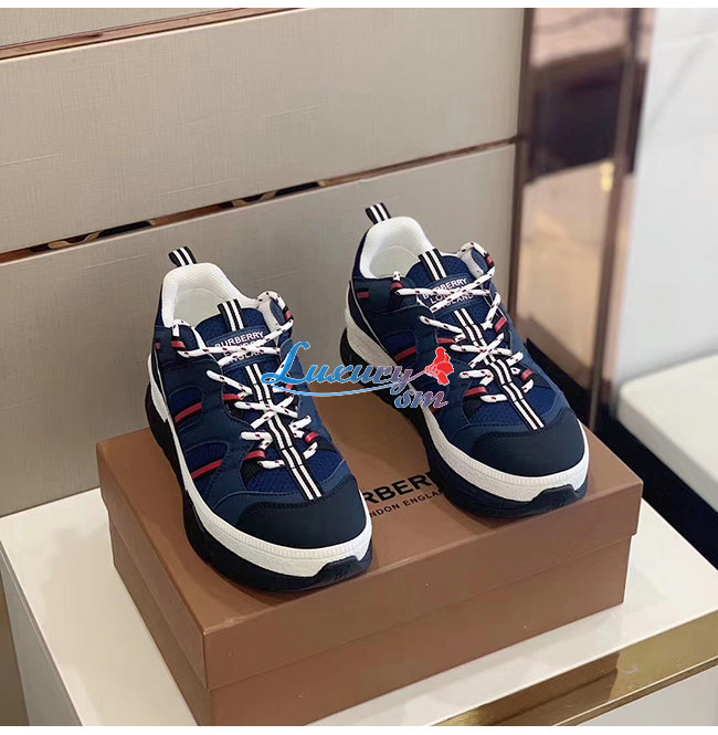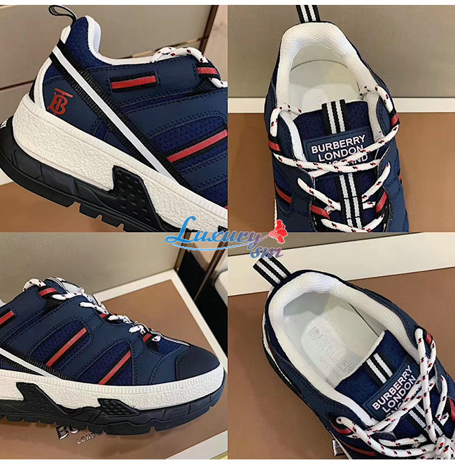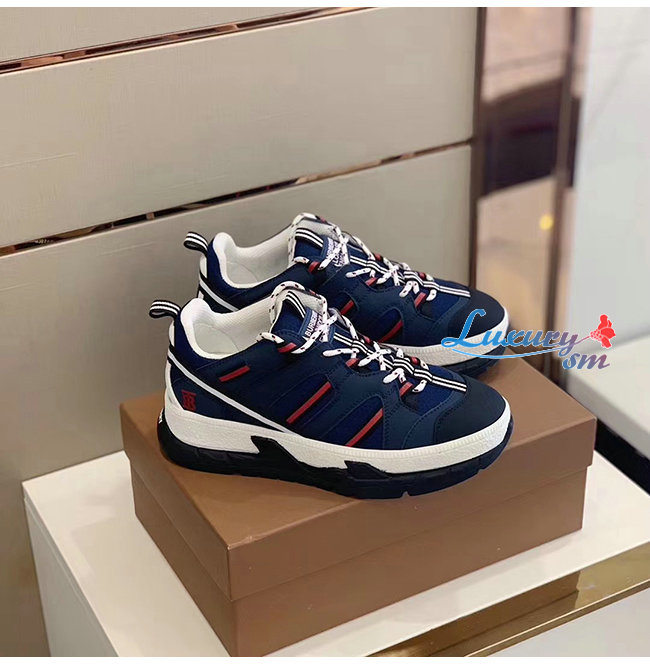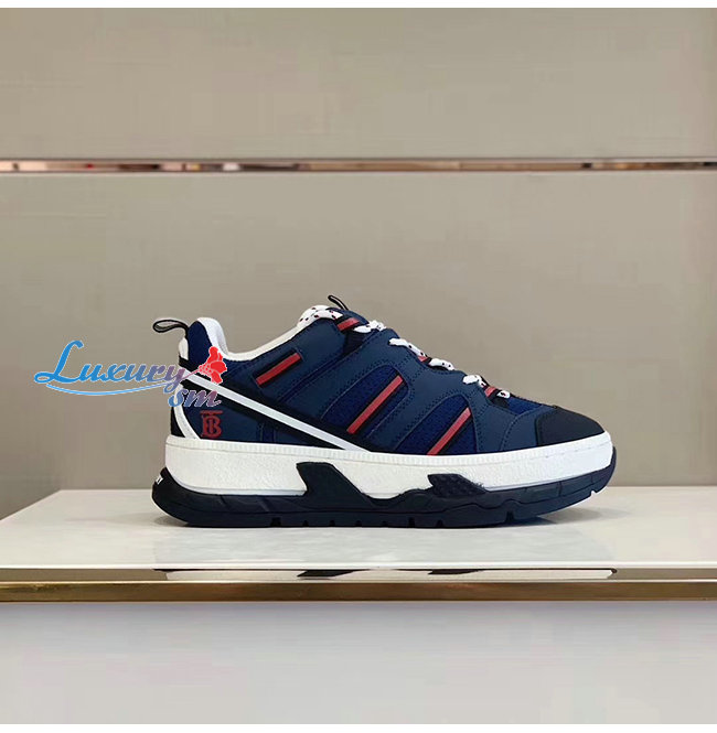 BURBERRY-80240451 버버리 네이비 레더 메시 유니언 스니커즈