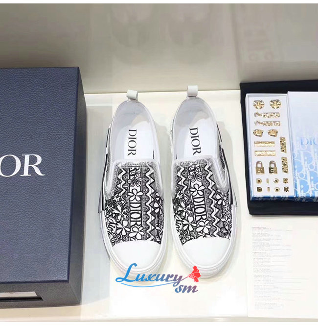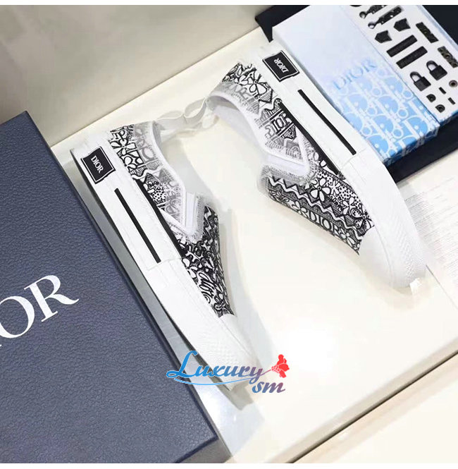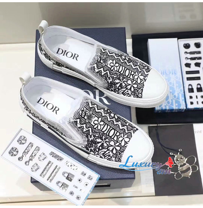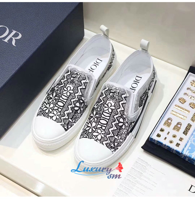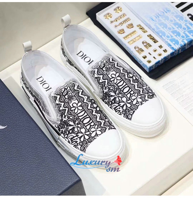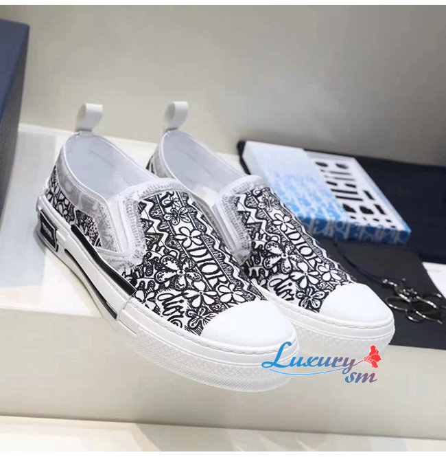 DIOR-3SN262 디올 화이트 DIOR AND SHAWN 자수 캔버스 B23 슬립온 스니커즈 남여공용