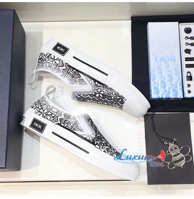 DIOR-3SN262 디올 블랙/화이트 Dior Oblique 캔버스 B23 슬립온 스니커즈 남여공용