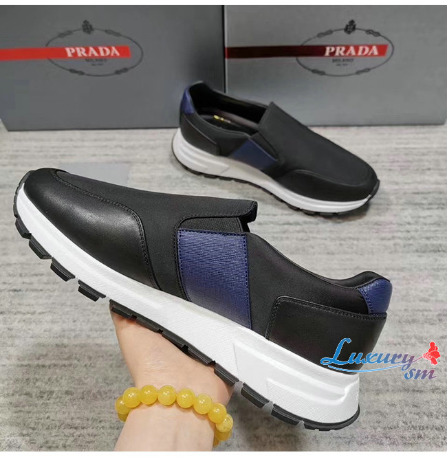 가죽과 프라다 나일론 소재의 슬립 온 스니커즈는