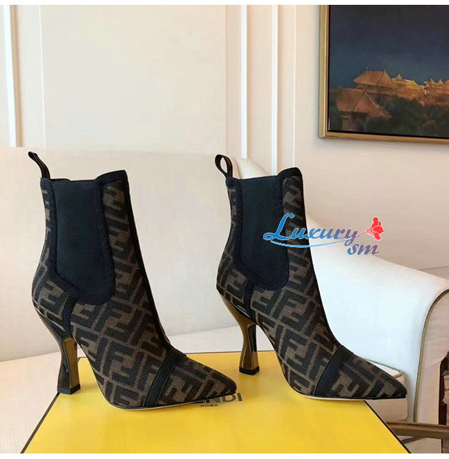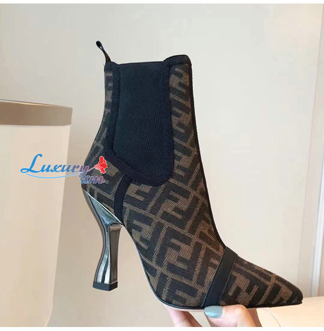 FENDI-8T7009 펜디 블랙/브라운 FF 모티프 메시 앵클 부츠