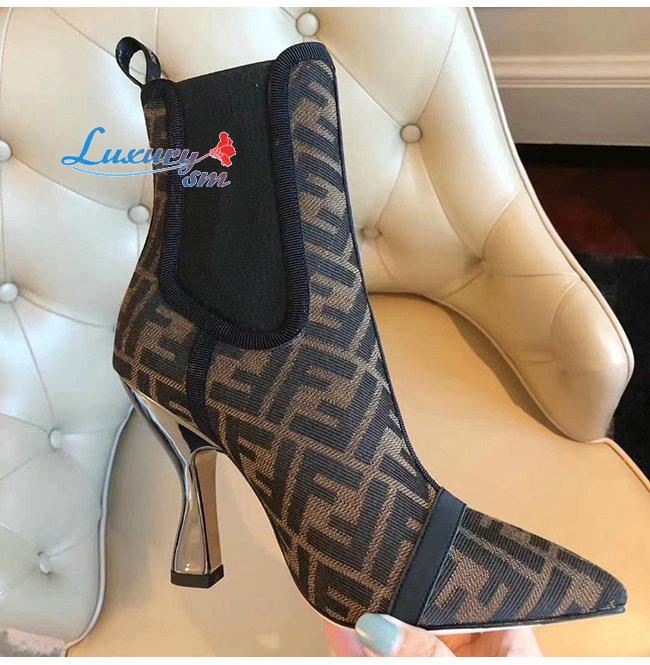 FENDI-8T7010 펜디 블랙/브라운 FF 모티프 메시 부츠