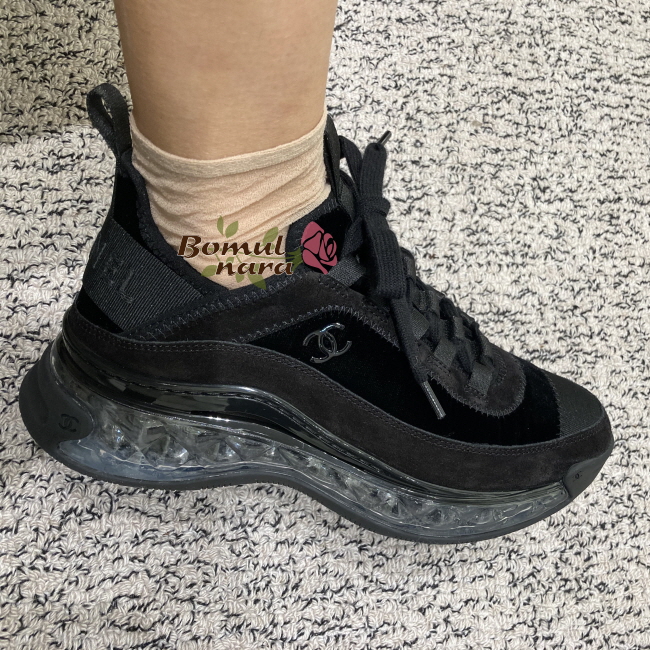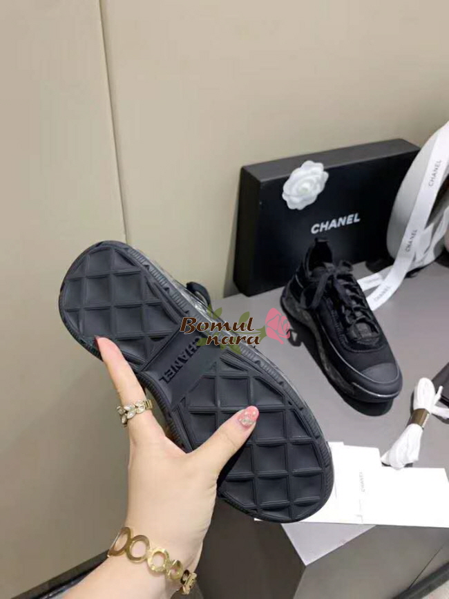 CHANEL-G36299 샤넬 블랙 믹스드 파이버 블랙 CC 로고 스니커즈