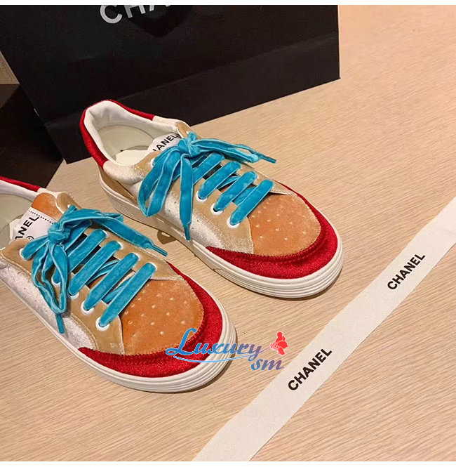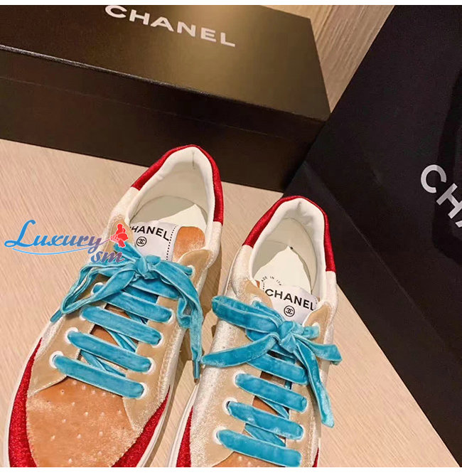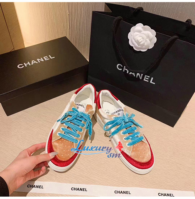 CHANEL-G36295 샤넬 화이트/베이지/버건디 벨벳 스니커즈