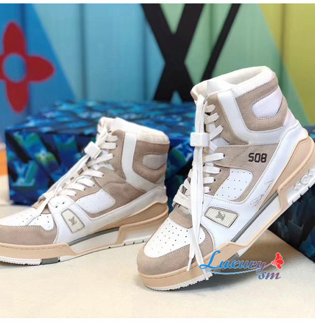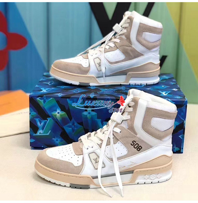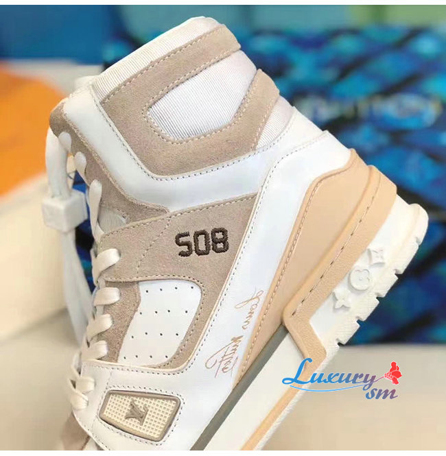 LOUIS VUITTON-1A7P25 루이비통 화이트 송아지 가죽 LV 트레이너 스니커 부츠