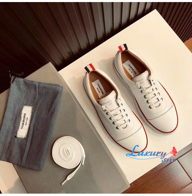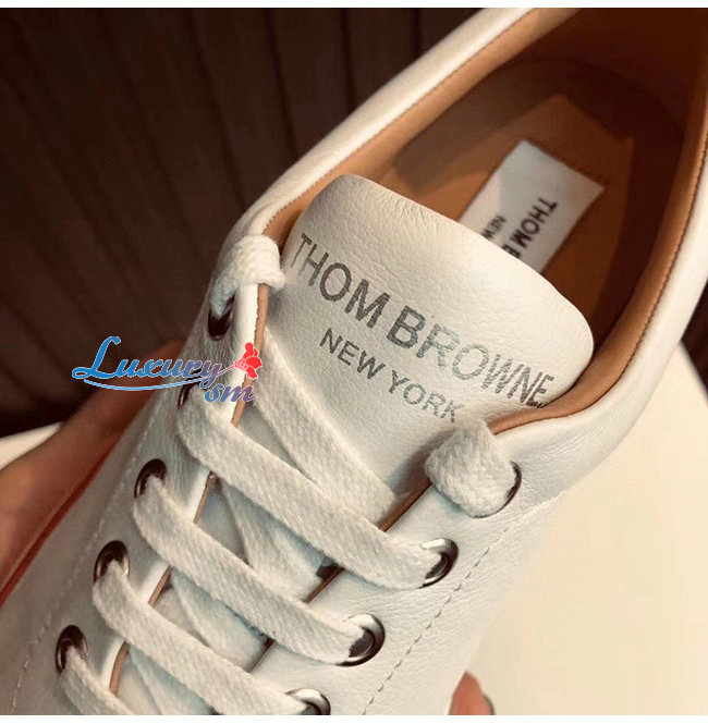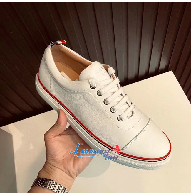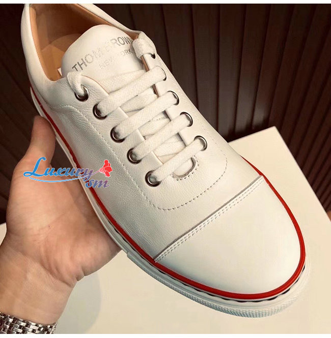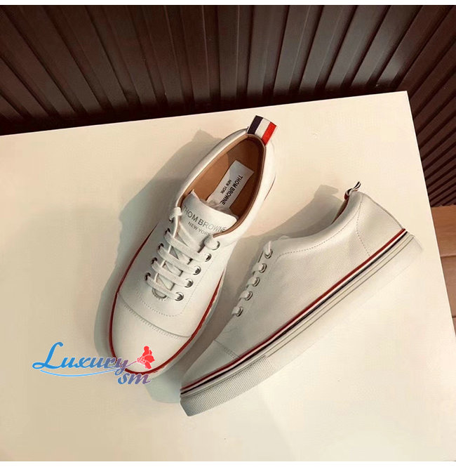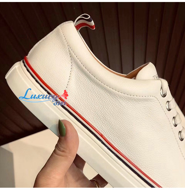 THOM BROWNE-067B001 톰 브라운 화이트 카프스킨 스트레이트 토 캡 트레이너 슈즈 남여공용