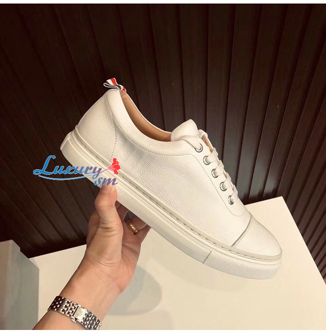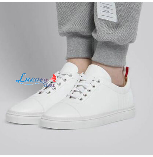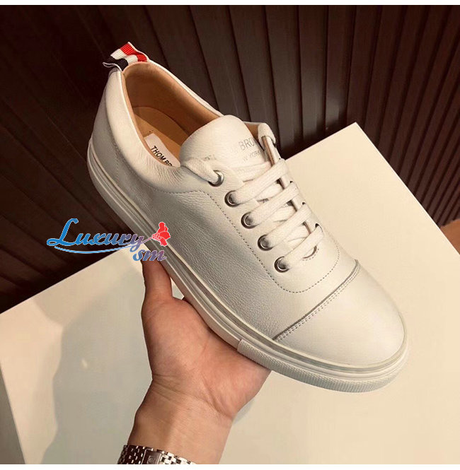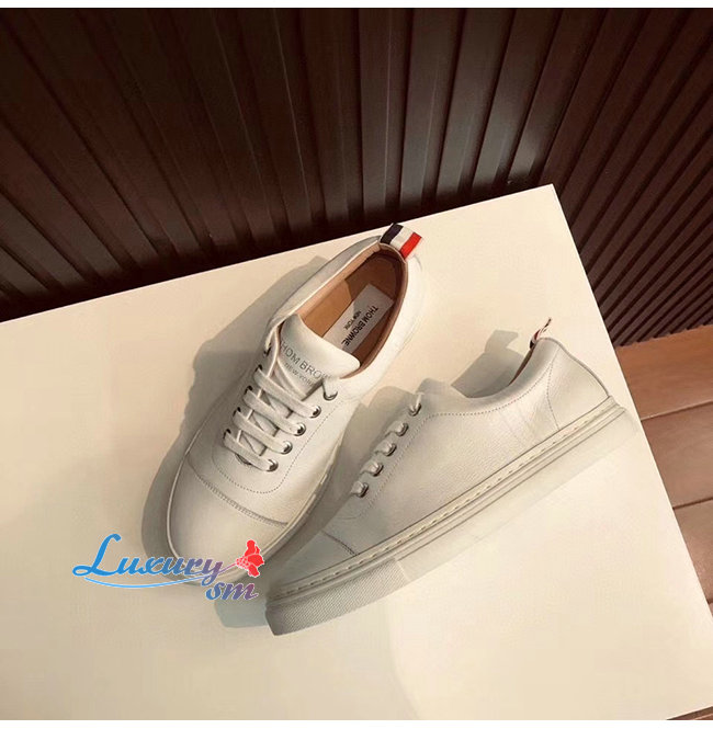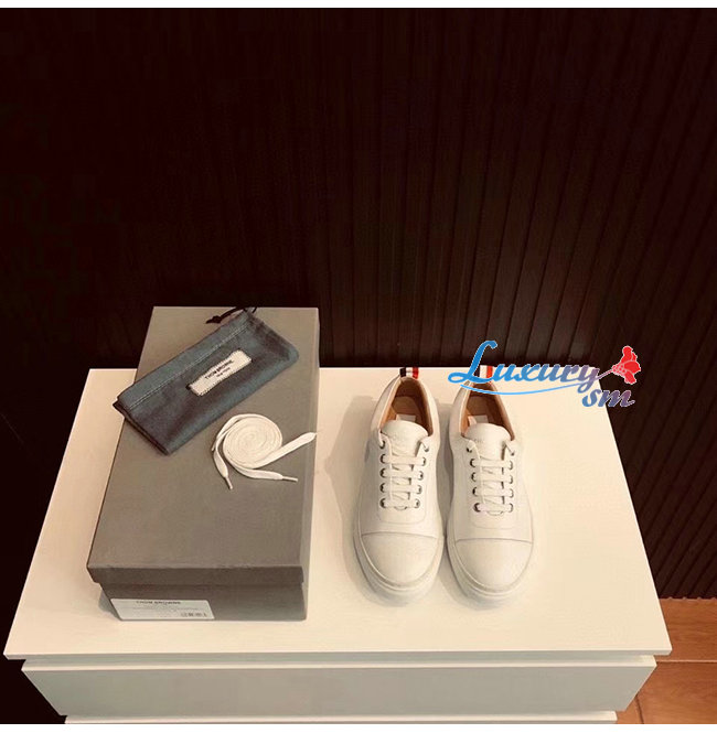 THOM BROWNE-067B001 톰 브라운 화이트 카프스킨 스트레이트 토 캡 트레이너 슈즈 남여공용 가격 : 240,000원