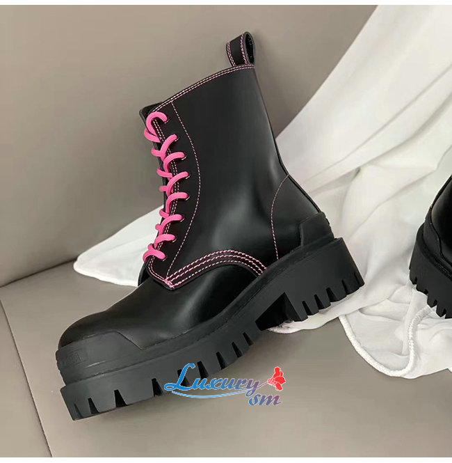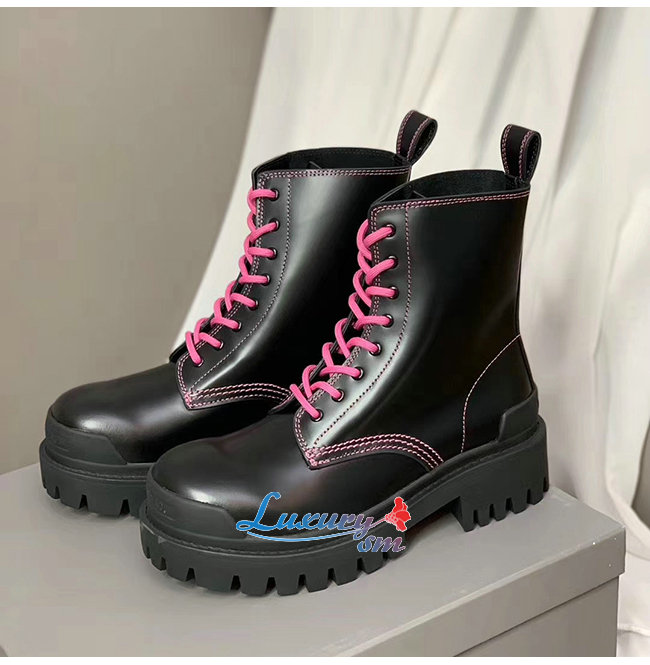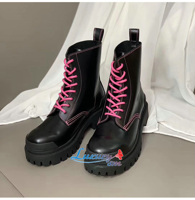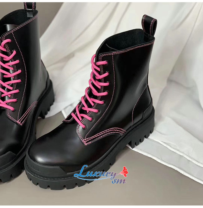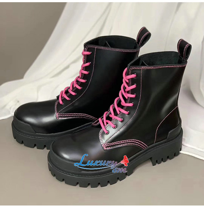 BALENCIAGA-590974 발렌시아가 블랙/핑크 송아지 가죽 스트라이크 레이스업 부츠 여성용