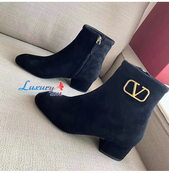 VALENTINO-UW2S0V30 발렌티노 블랙 스웨이드 가죽 VLOGO SIGNATURE 앵클 부츠