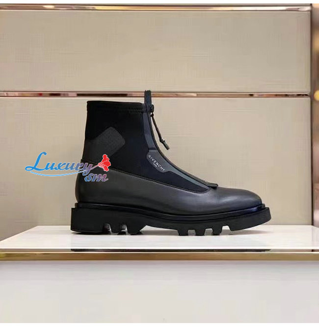 GIVENCHY-BH601Z 지방시 블랙 송아지 가죽 네오프렌 컴뱃 부츠 남성용