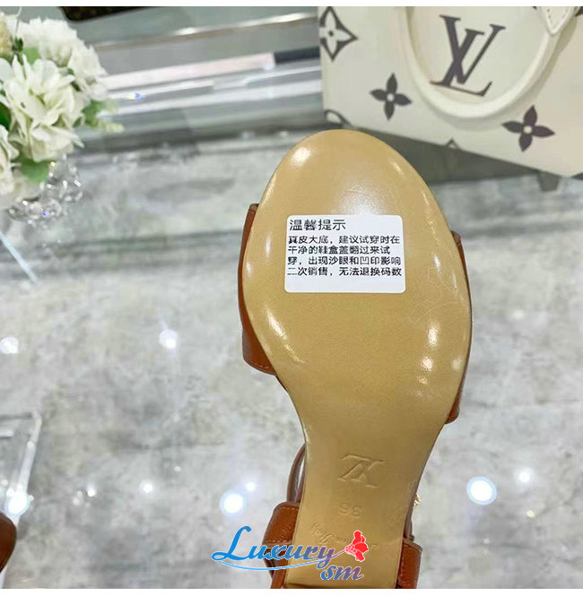 LOUIS VUITTON-1A8FXF 루이비통 브라운 그레인 송아지 가죽 락 잇 샌들