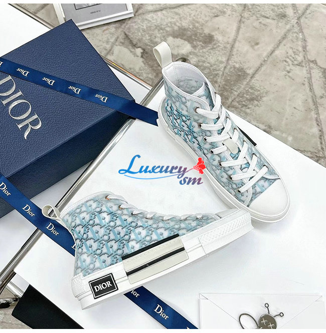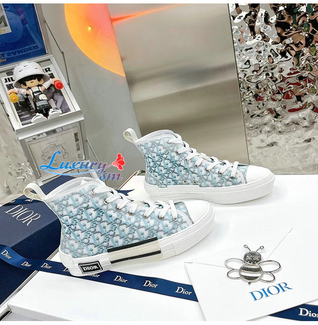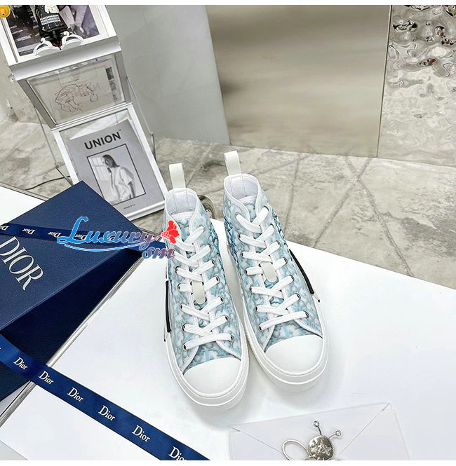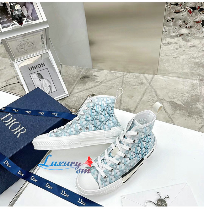 DIOR-3SH118 디올 그라데이션 블루 Dior Oblique 캔버스 B23 하이탑 스니커즈 남여공용