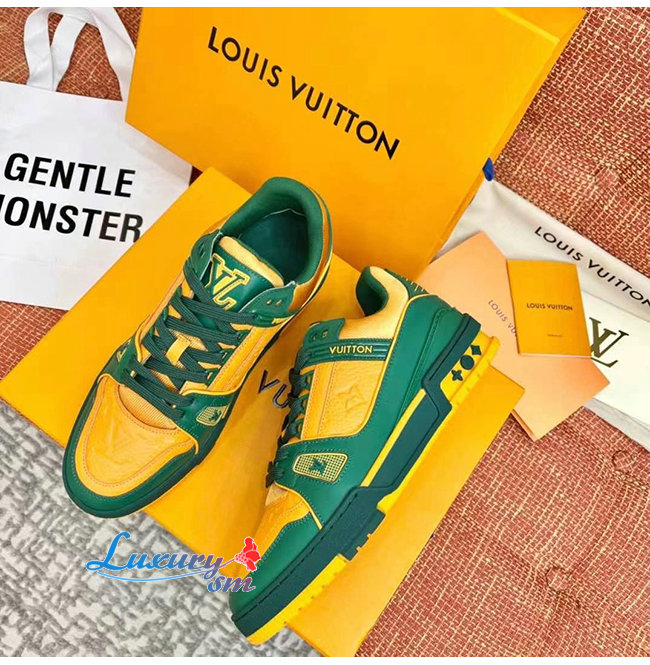 [스페셜오더]LOUIS VUITTON-1A8WG1 루이비통 그린/오렌지 모노그램 그레인 송아지 가죽 LV 트레이너 스니커즈