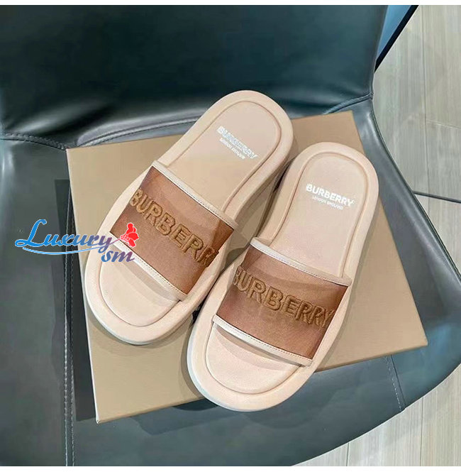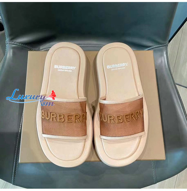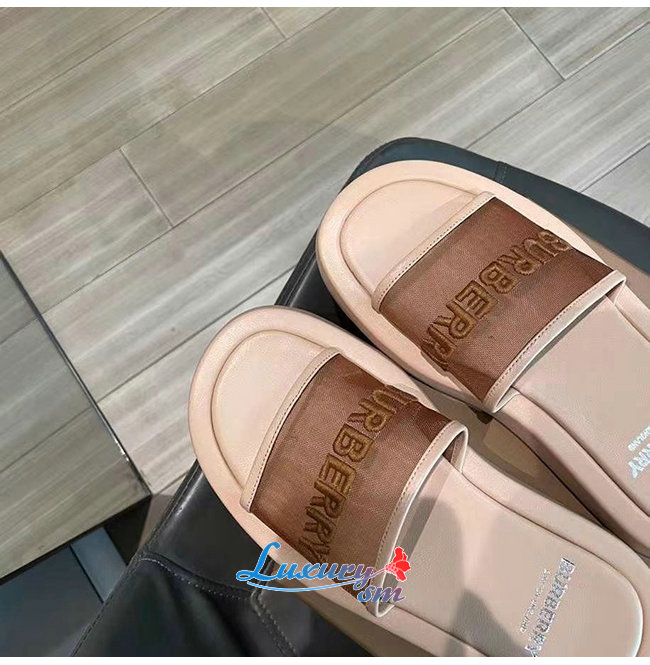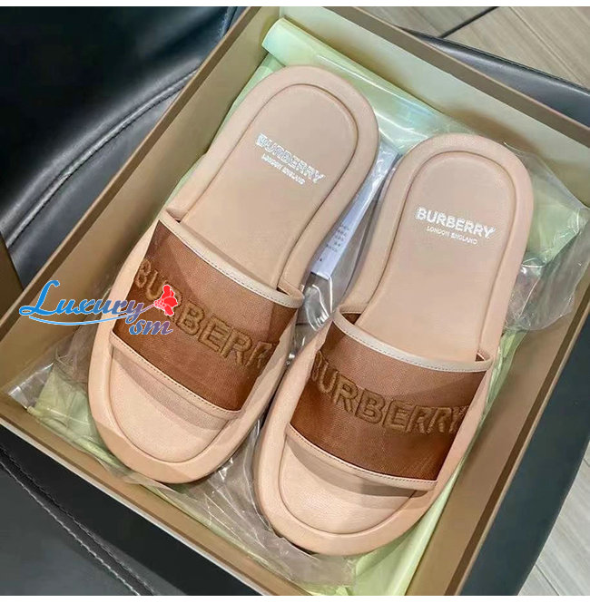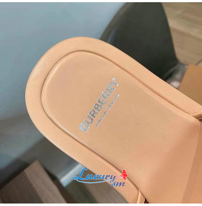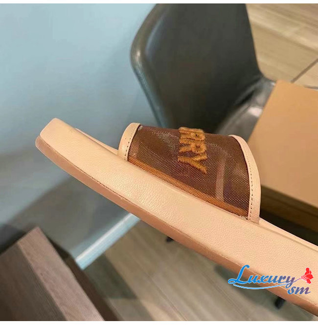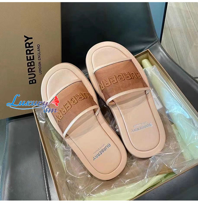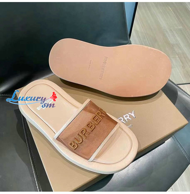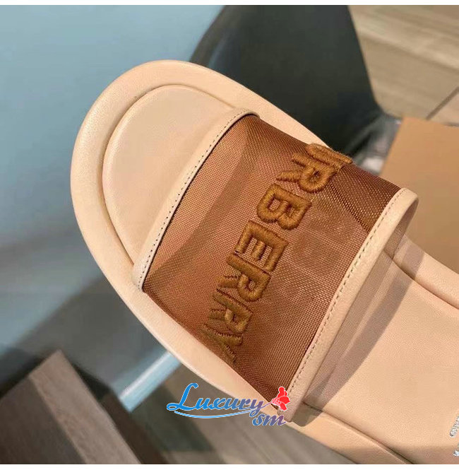 BURBERRY-80406931 버버리 카멜 엠브로이더리 로고 메시 레더 슬라이드