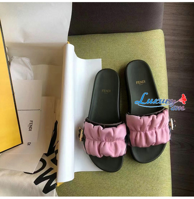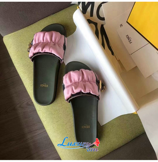 FENDI-8X8142 펜디 핑크 새틴 버티고 슬라이드 여성용