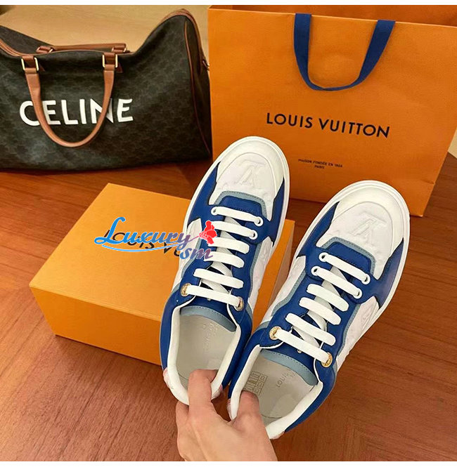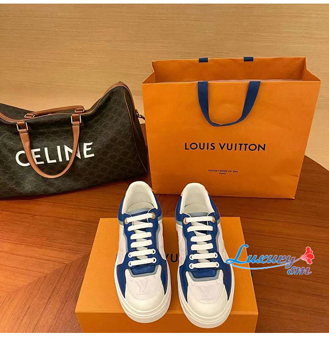 LOUIS VUITTON-1A8VUU 루이비통 블루 모노그램 송아지 가죽 타임 아웃 스니커즈