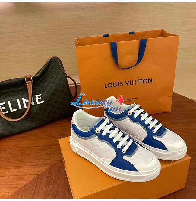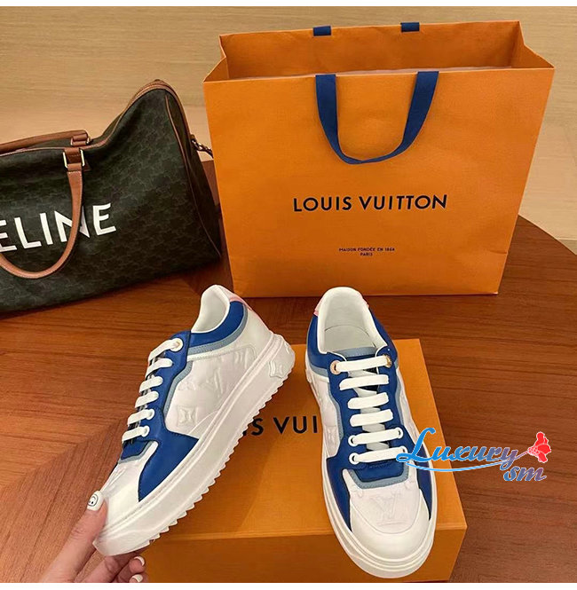 LOUIS VUITTON-1A87N2 루이비통 화이트/블루 모노그램 송아지 가죽 타임 아웃 스니커즈 남여공용 가격 : 240,000원
