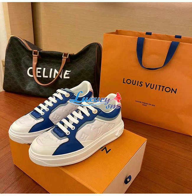 LOUIS VUITTON-1A8MZB 루이비통 화이트/라이트 블루 송아지 가죽 타임 아웃 스니커즈 남여공용 가격 : 250,000원